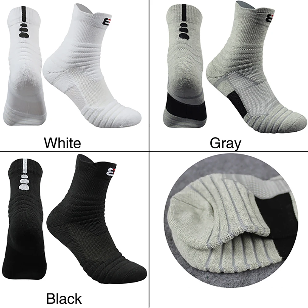 1 пара баскетбольных носков, мужские утолщенные Носки средней длины, хлопковые носки для улицы, бега, бадминтона, тенниса, спортивные носки