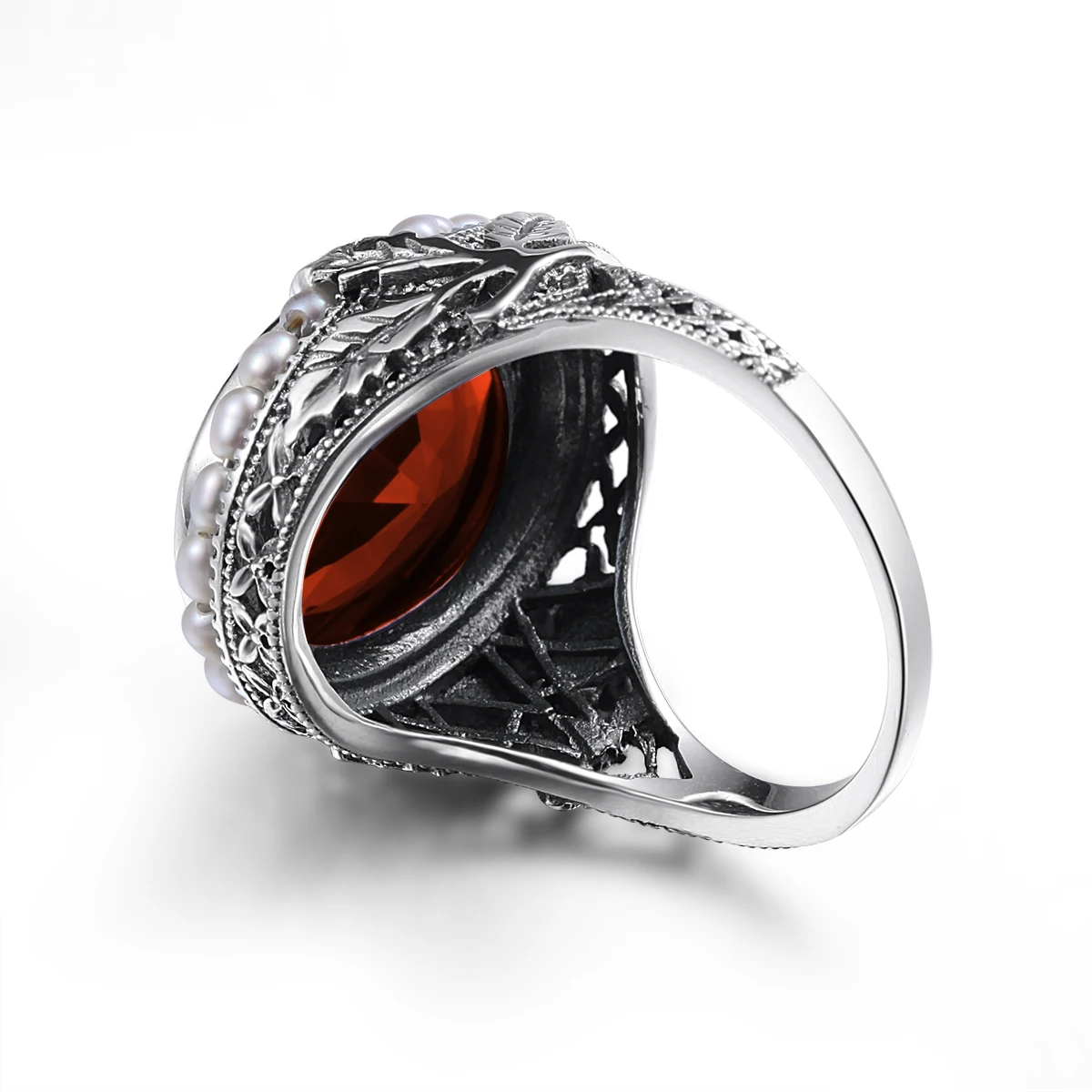 Женское кольцо с натуральным пресноводным жемчугом Szjinao, Винтажное кольцо с большим камнем и янтарным серебром 925 пробы, овальной формы