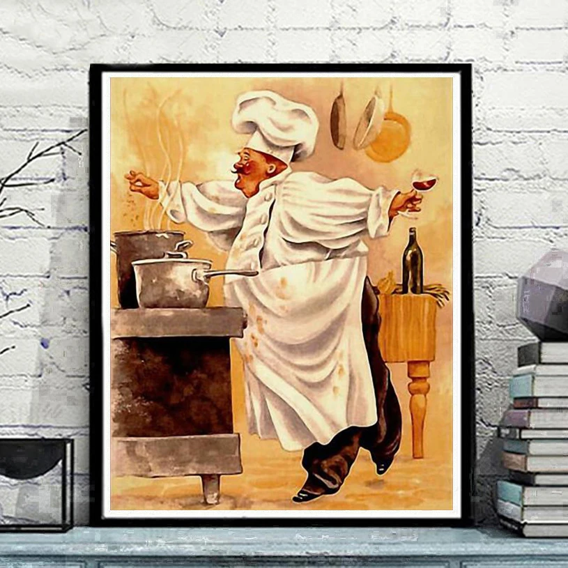 5D алмазная живопись сделай сам, мультяшный толстый шеф-повар, полная вышивка, вышивка крестиком, мозаика, Наборы для творчества, домашний декор, рождественский подарок