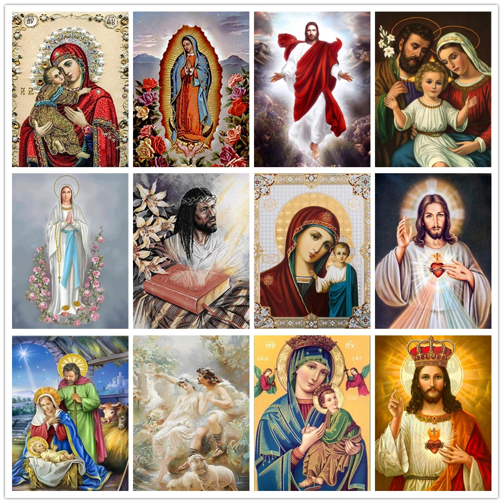 Алмазная вышивка сделай сам, полноформатная картина с изображением Богородицы стразы, мозаика из страз, религиозная икона, Иисуса