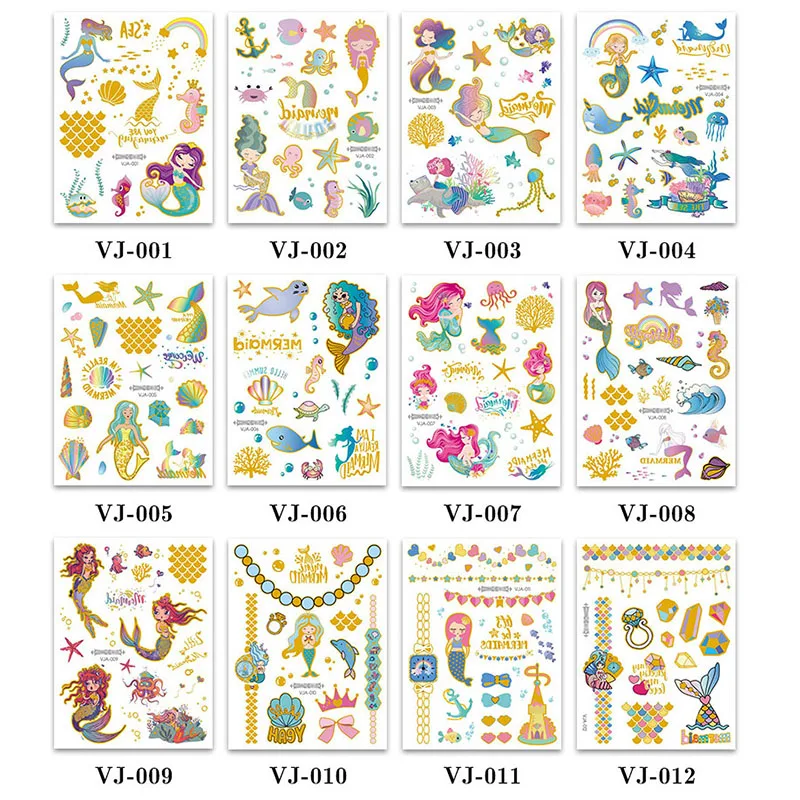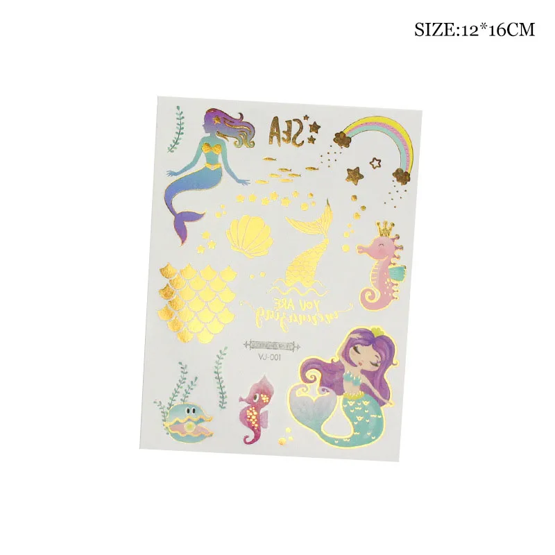 Русалки бронзового цвета с блестками и изображениями героев мультфильмов; Наклейки для временных татуировок детская декор в виде золотистых металлических тела для временных татуировок Русалка на день рождения вечерние