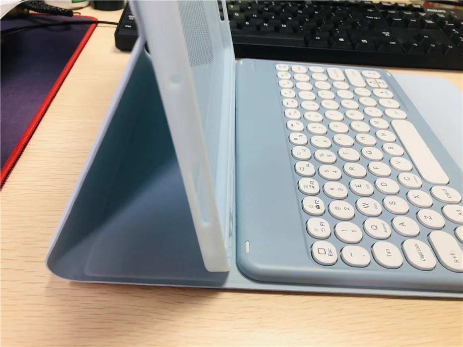 Как вы видите, небесно-голубой красивый. Удобный и мягкий чехол для iPad. Клавиатура и мышь могут работать нормально. Мне очень нравится. Я не могу дождаться, чтобы взять его домой и сразу установить мой iPad. Я буду рекомендовать его моим хорошим друзьям. ..