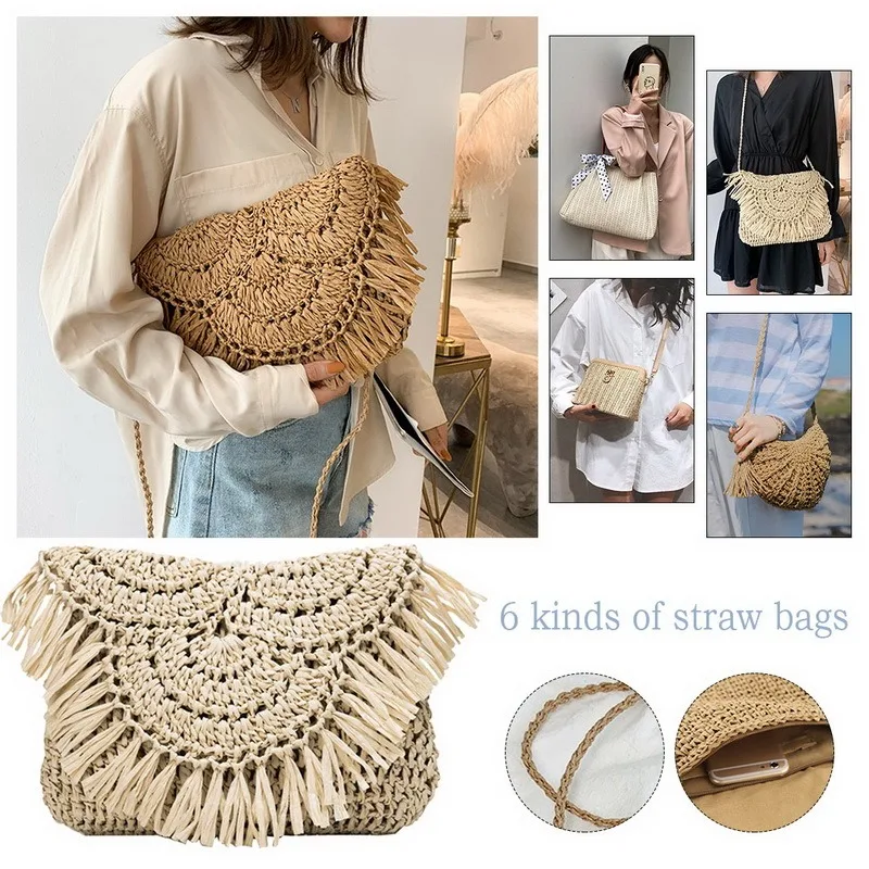 Летние соломенные сумки для женщин, пляжные сумки ручной работы с кисточками, плетеные сумки 2021, сумки-мессенджеры через плечо для отпуска, клатч