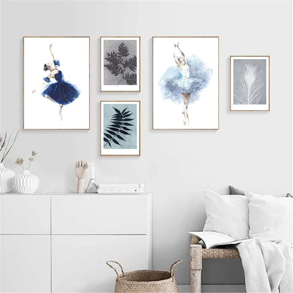 Акварельные растения, листья, холст, настенная живопись, плакат балерины, абстрактный лист, танцующий принт, скандинавский настенный Рисунок, картины, домашний декор