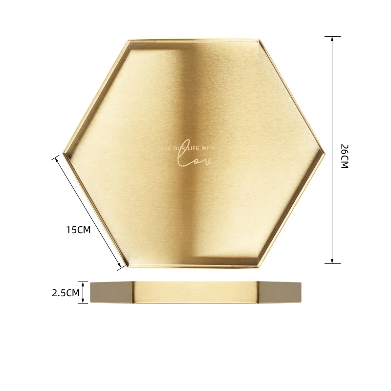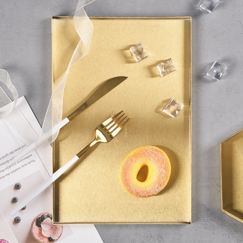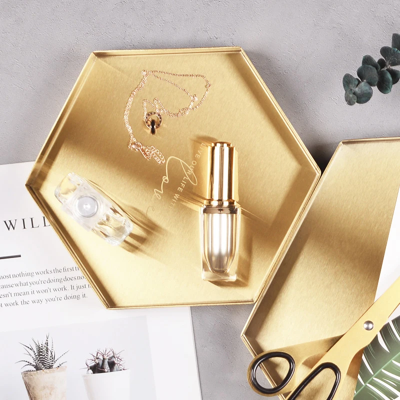 Золотой поднос из нержавеющей стали для хранения фруктов, креативная металлическая Геометрическая косметическая витрина для ювелирных изделий, настольное украшение для хранения