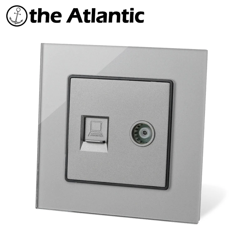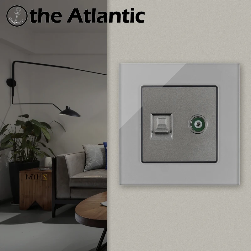 Антенна RJ45 Cat5e для передачи компьютерных данных, спутниковая, ТВ-сигнальная, телефонная, разъем Cat3, разъем для передачи данных, серый, серый, серебристый, стеклянная рамка