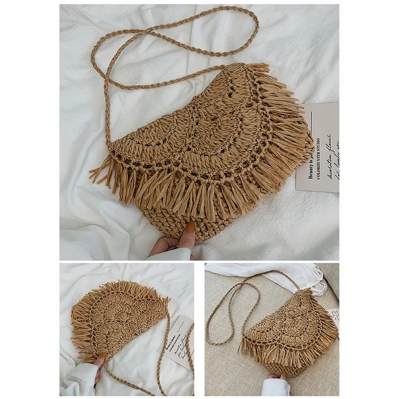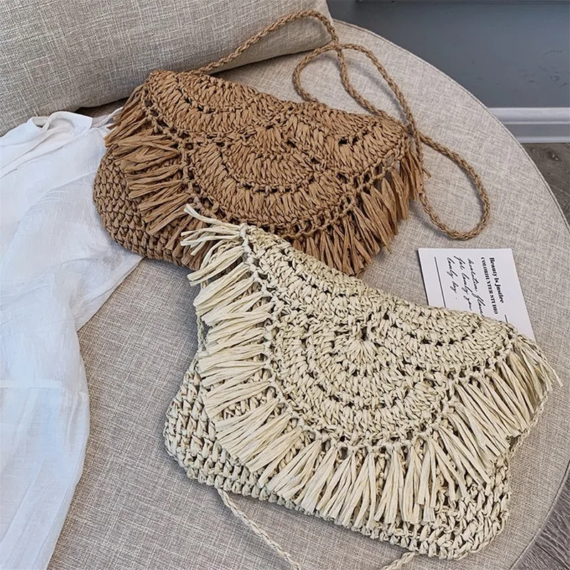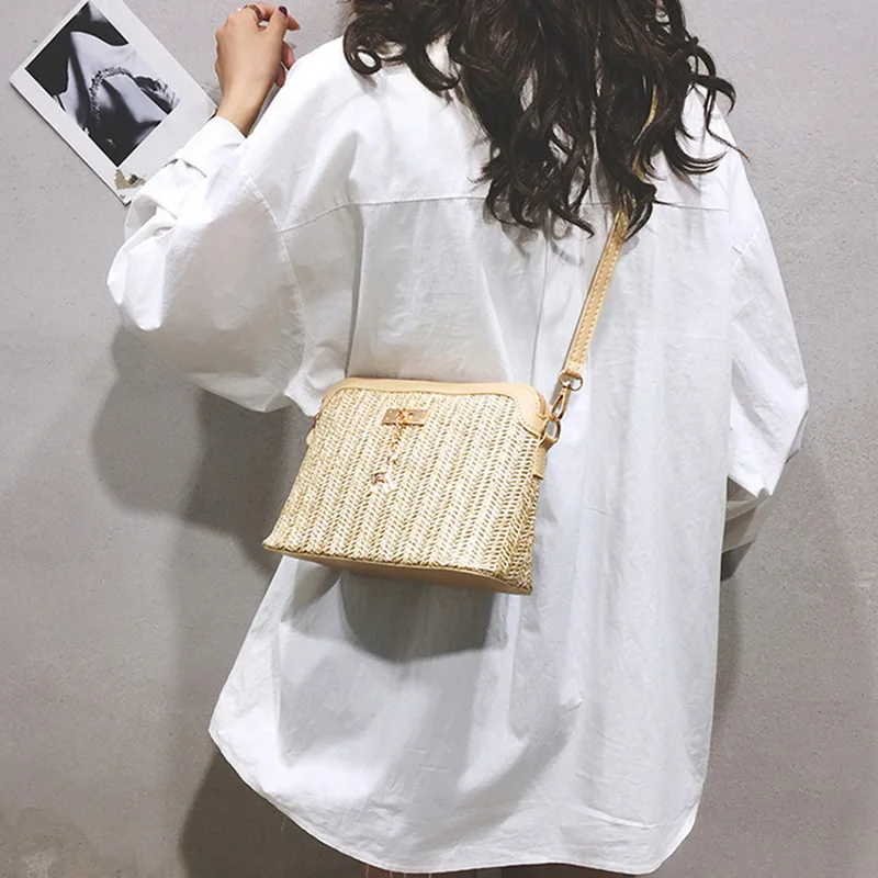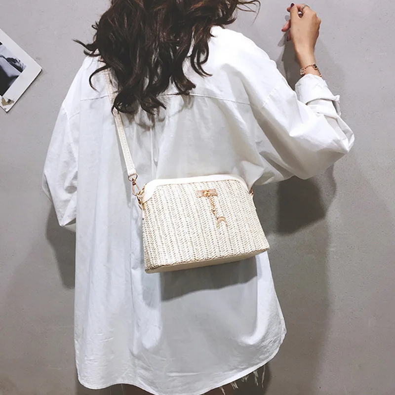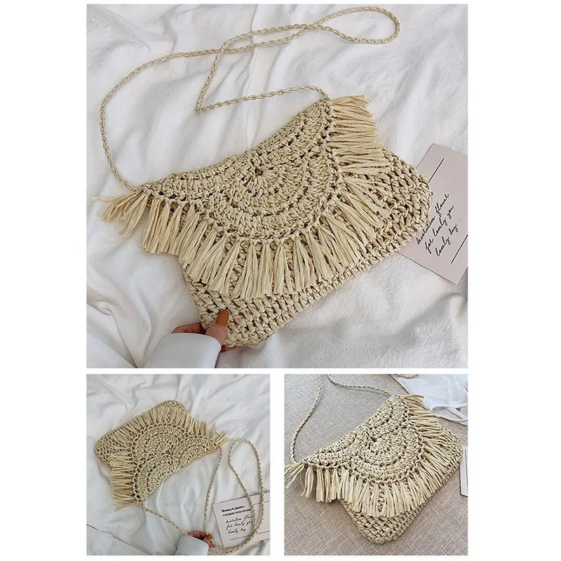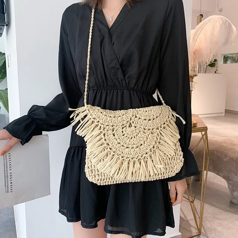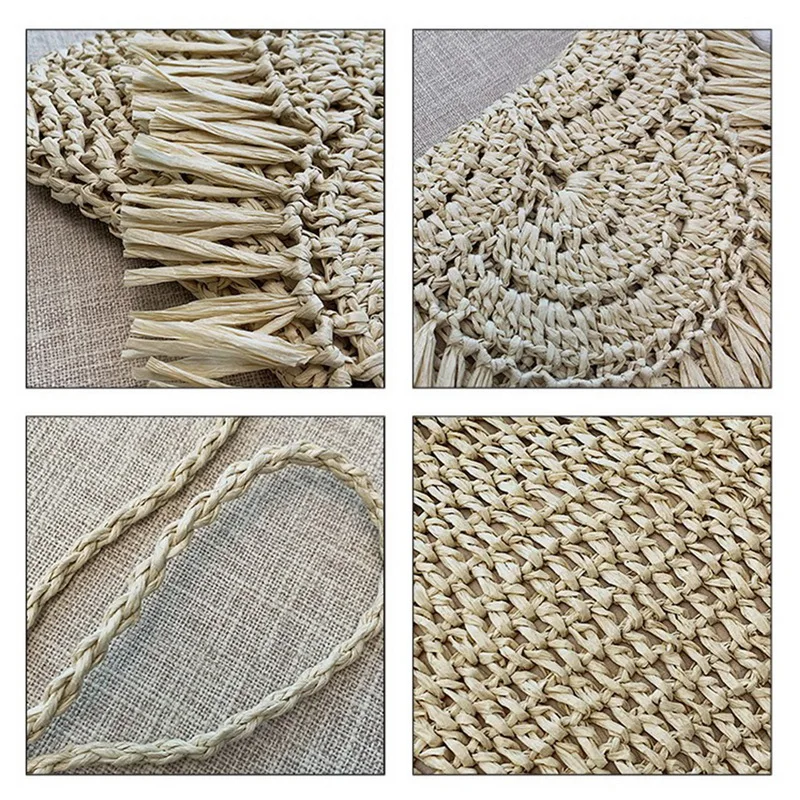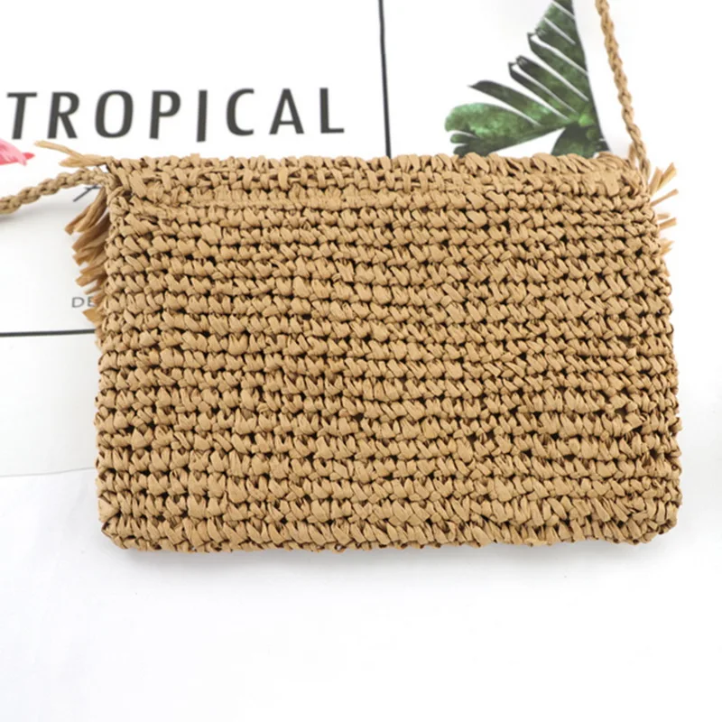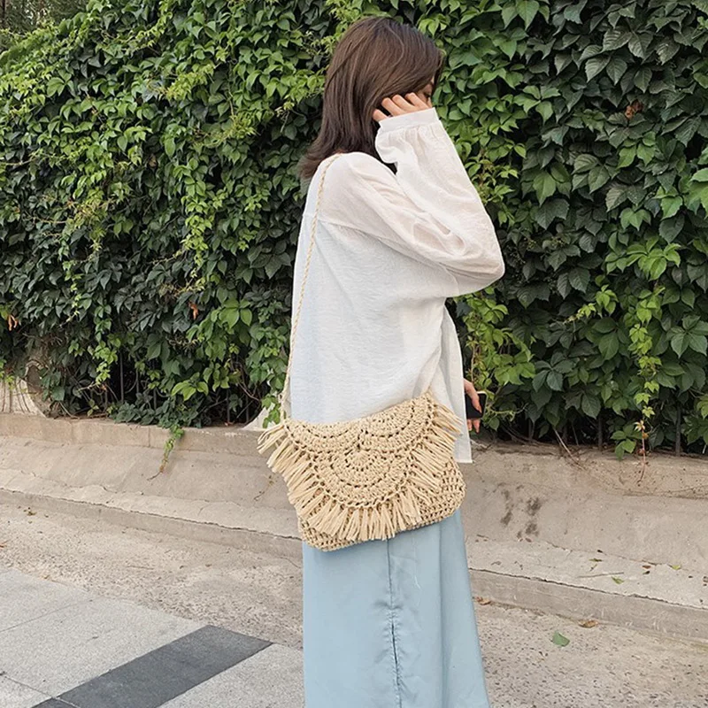 Сумка женская с плетеным плечевым ремнем, Повседневная пляжная соломенная сумка-мессенджер с кистями, модная вместительная сумочка через плечо, лето