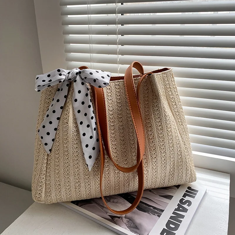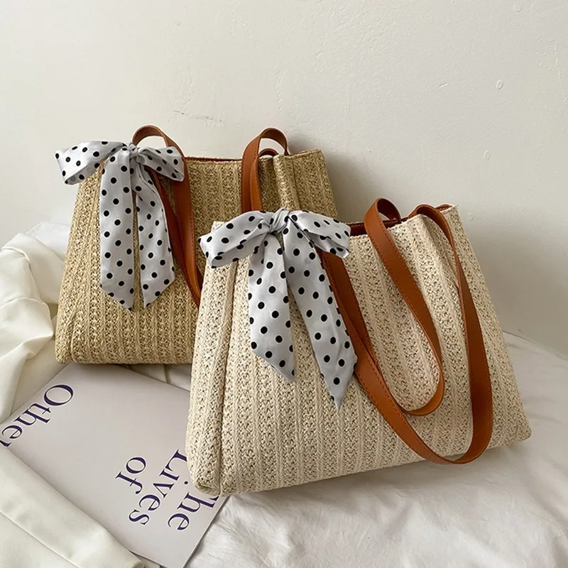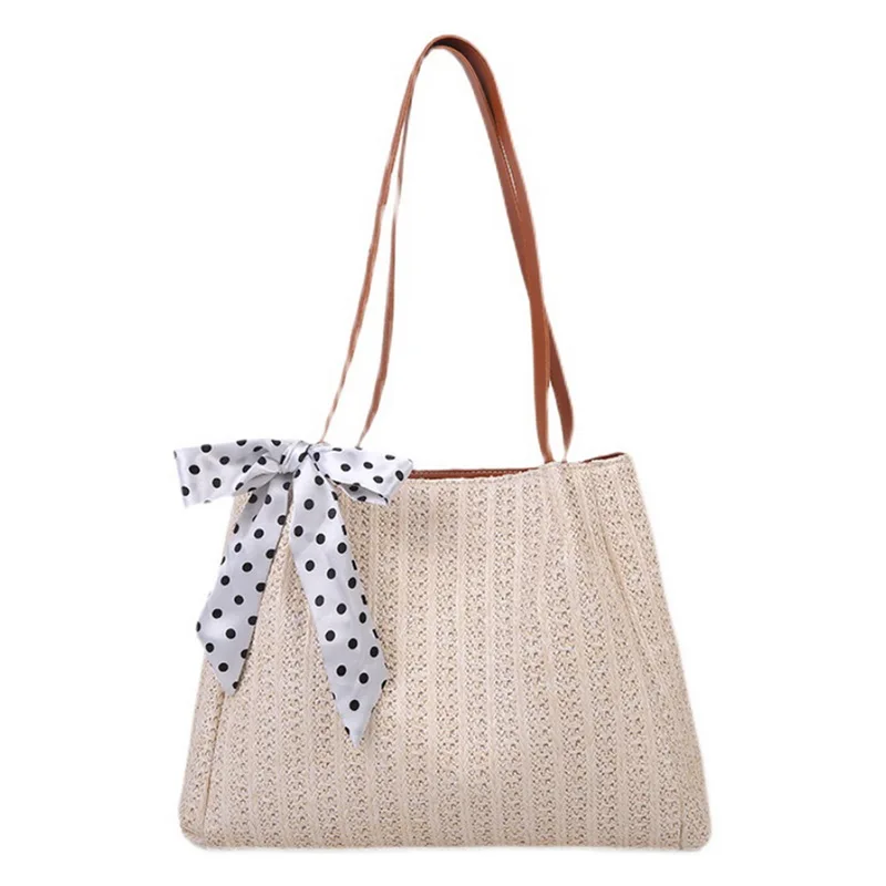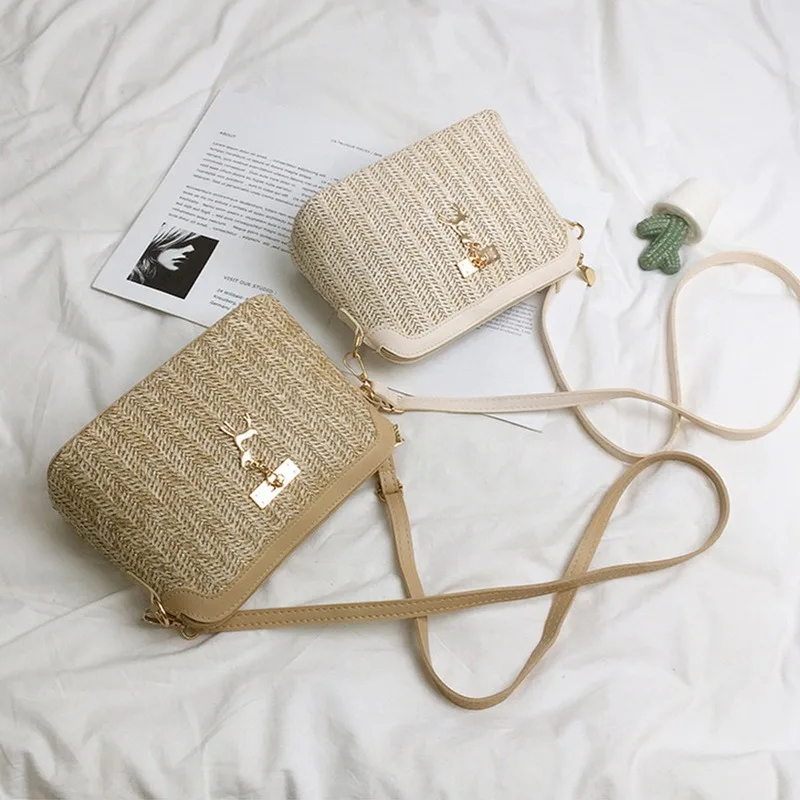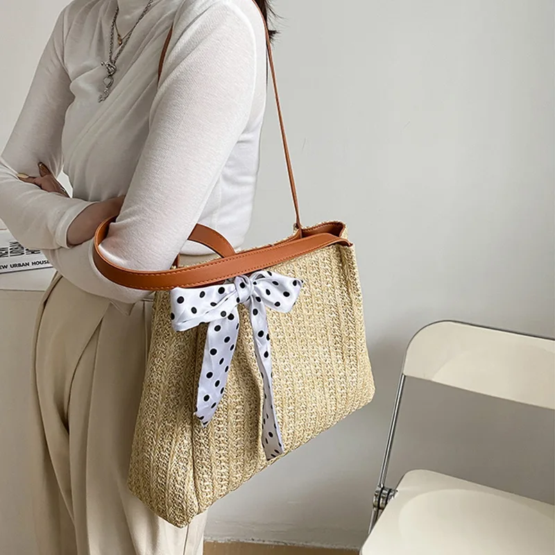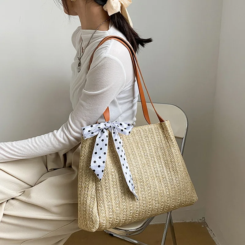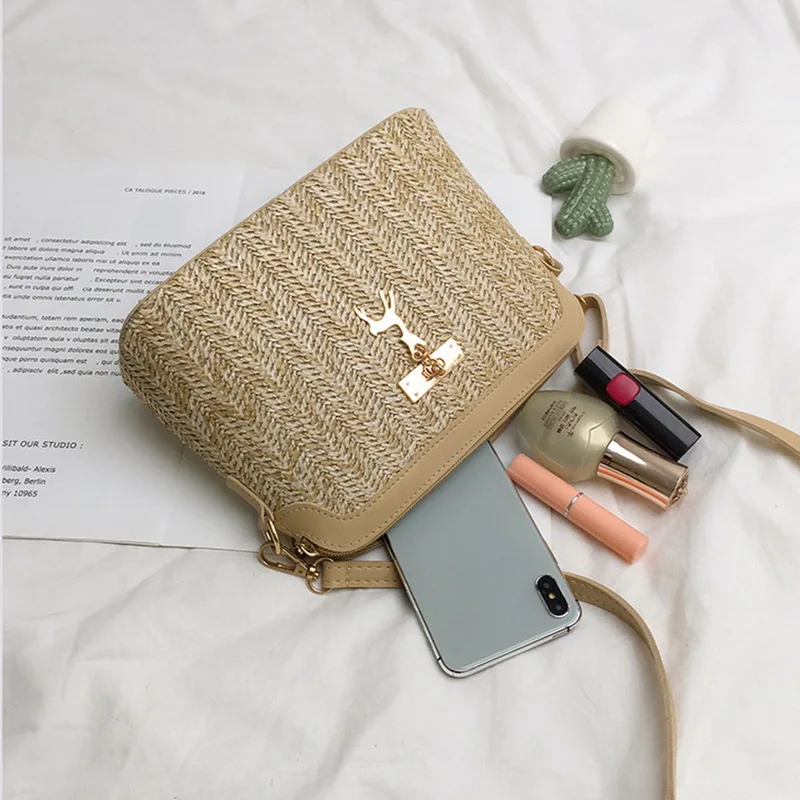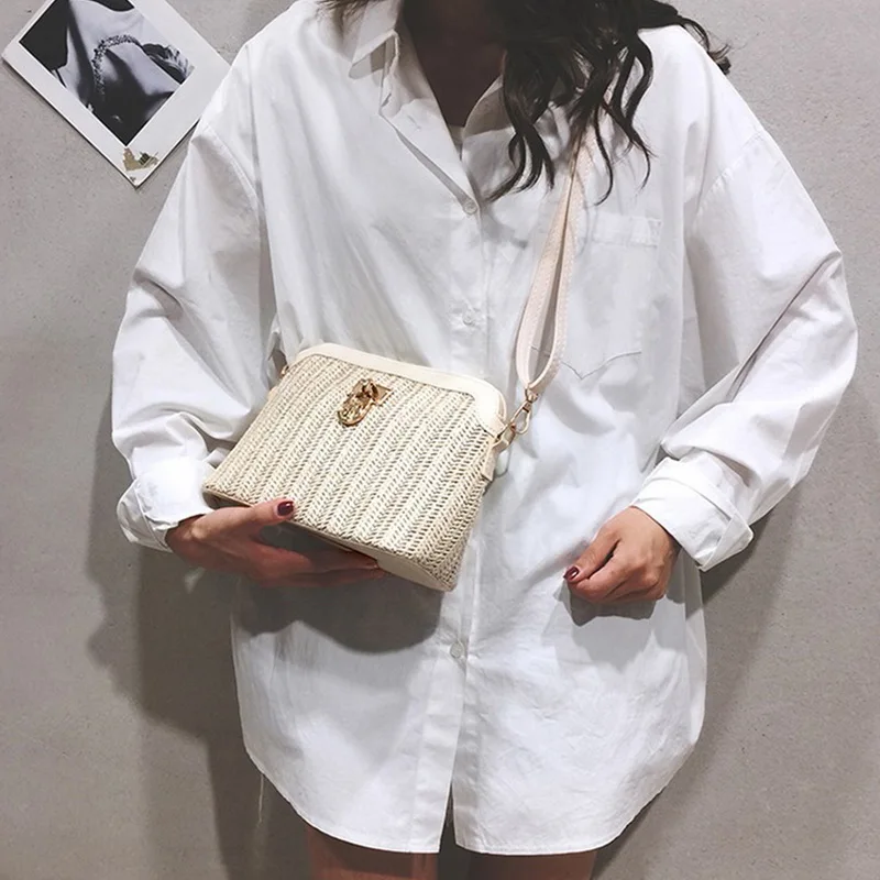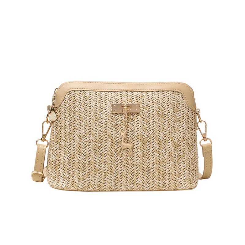Сумка женская с плетеным плечевым ремнем, Повседневная пляжная соломенная сумка-мессенджер с кистями, модная вместительная сумочка через плечо, лето