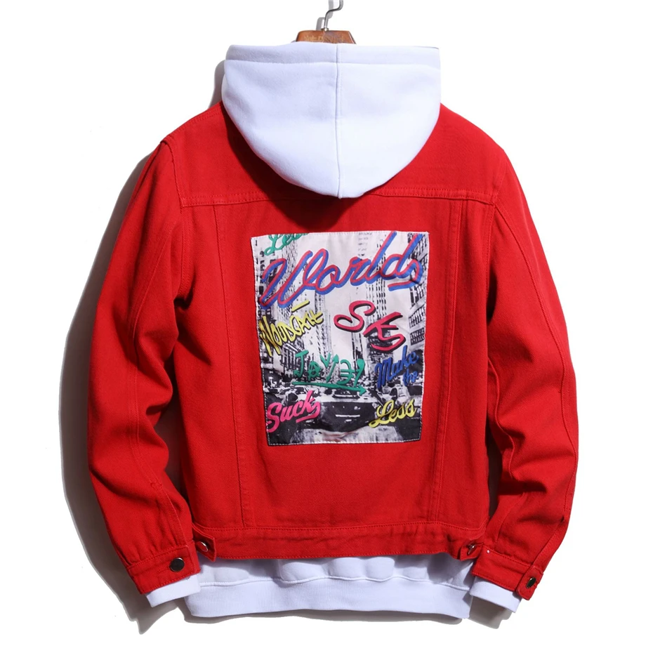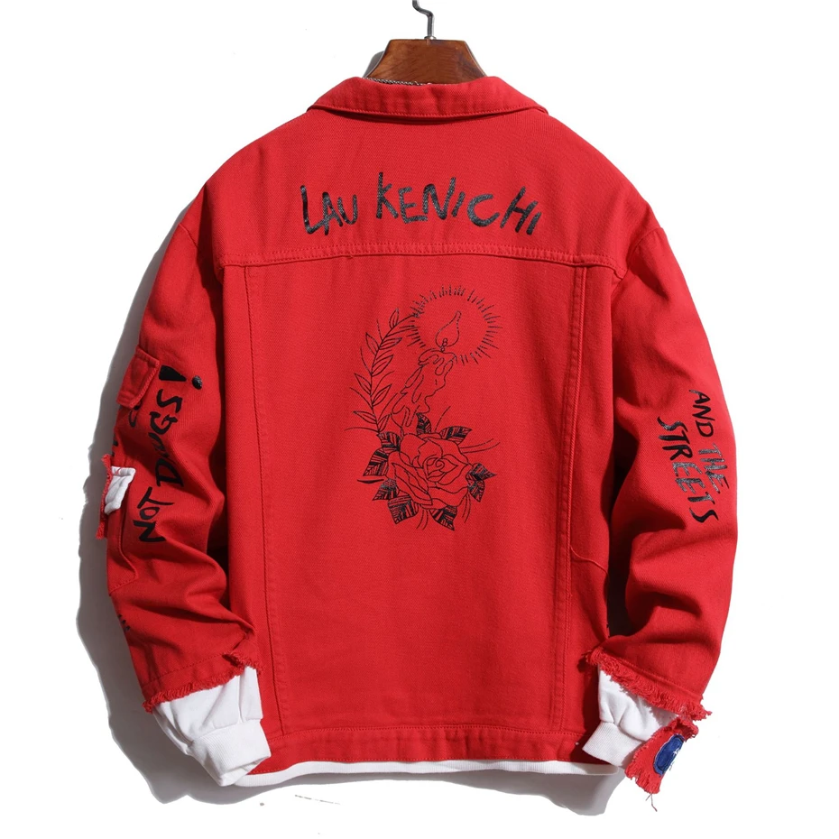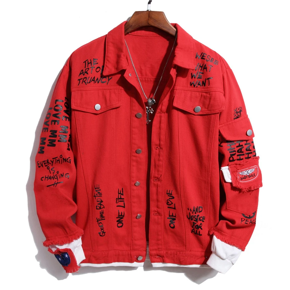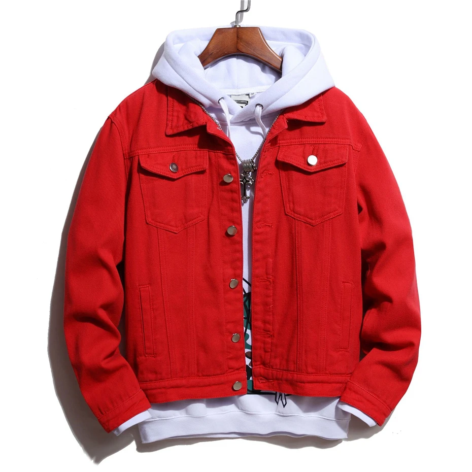 Мужская джинсовая куртка, черная, красная, синяя, черная, белая, кр...