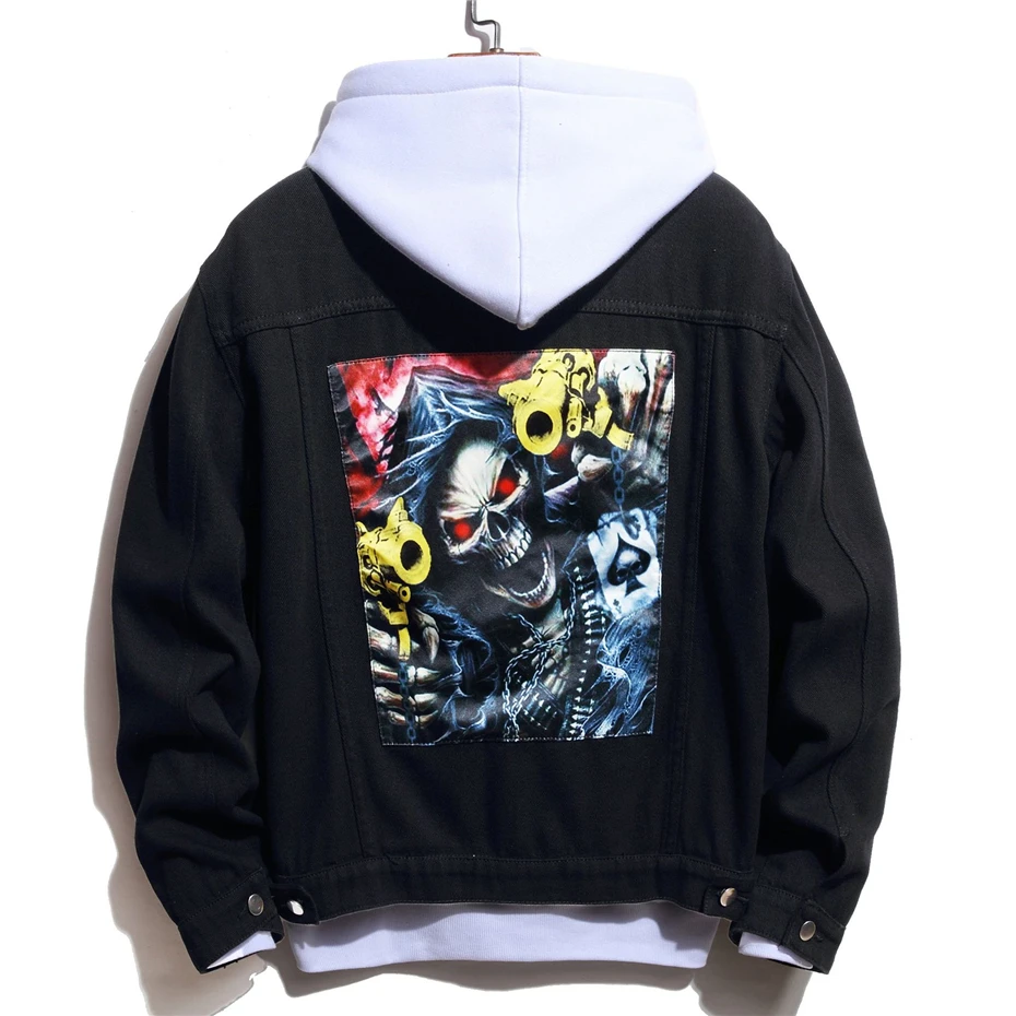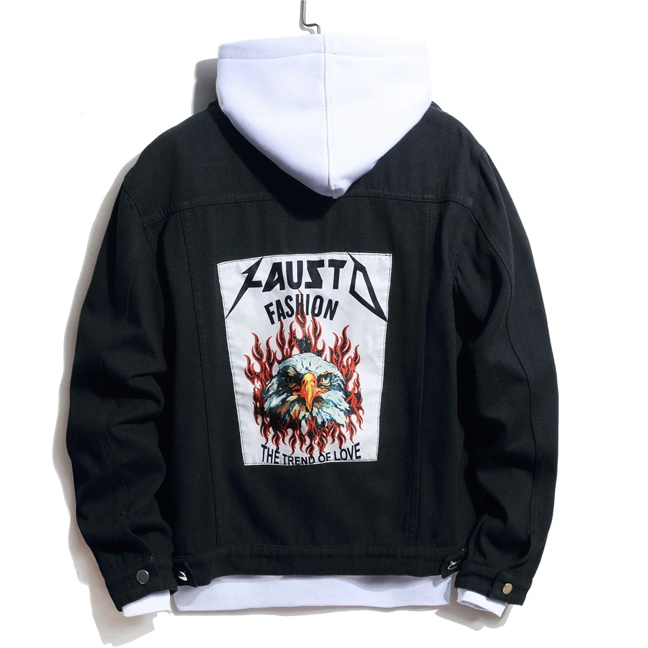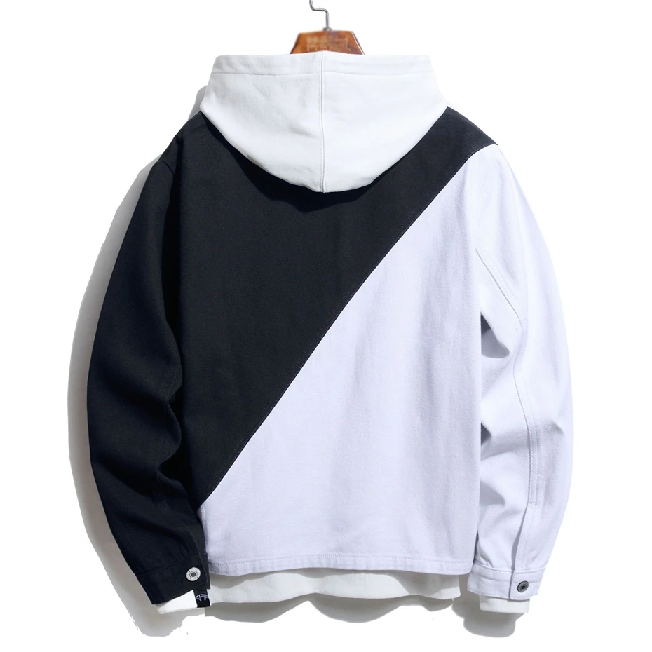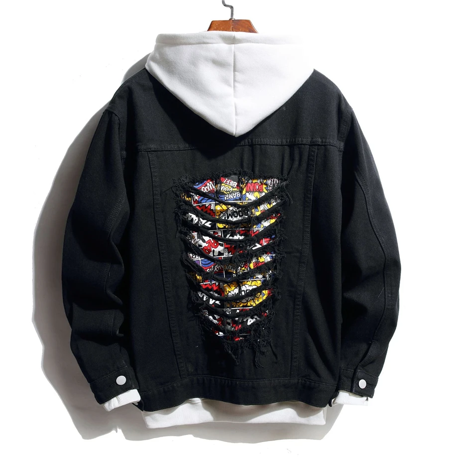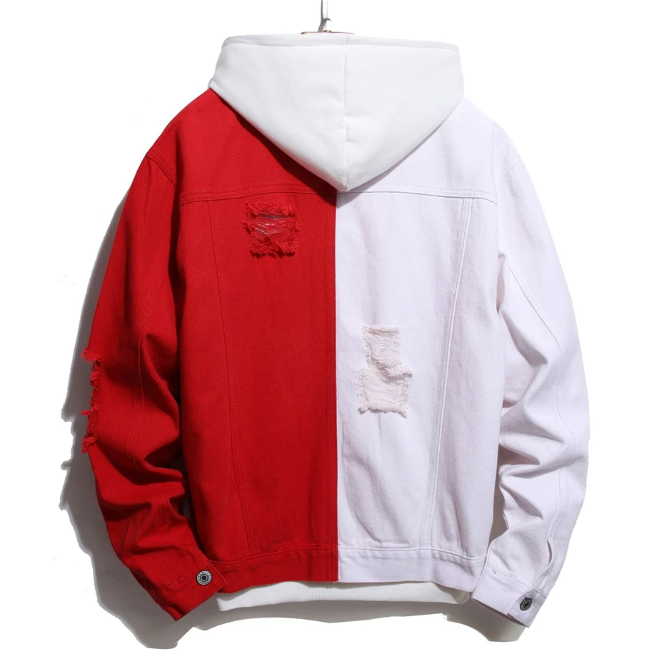 Мужская джинсовая куртка в стиле пэчворк, повседневная двухцветная куртка из денима, уличная одежда в стиле хип-хоп, WY853, 2021