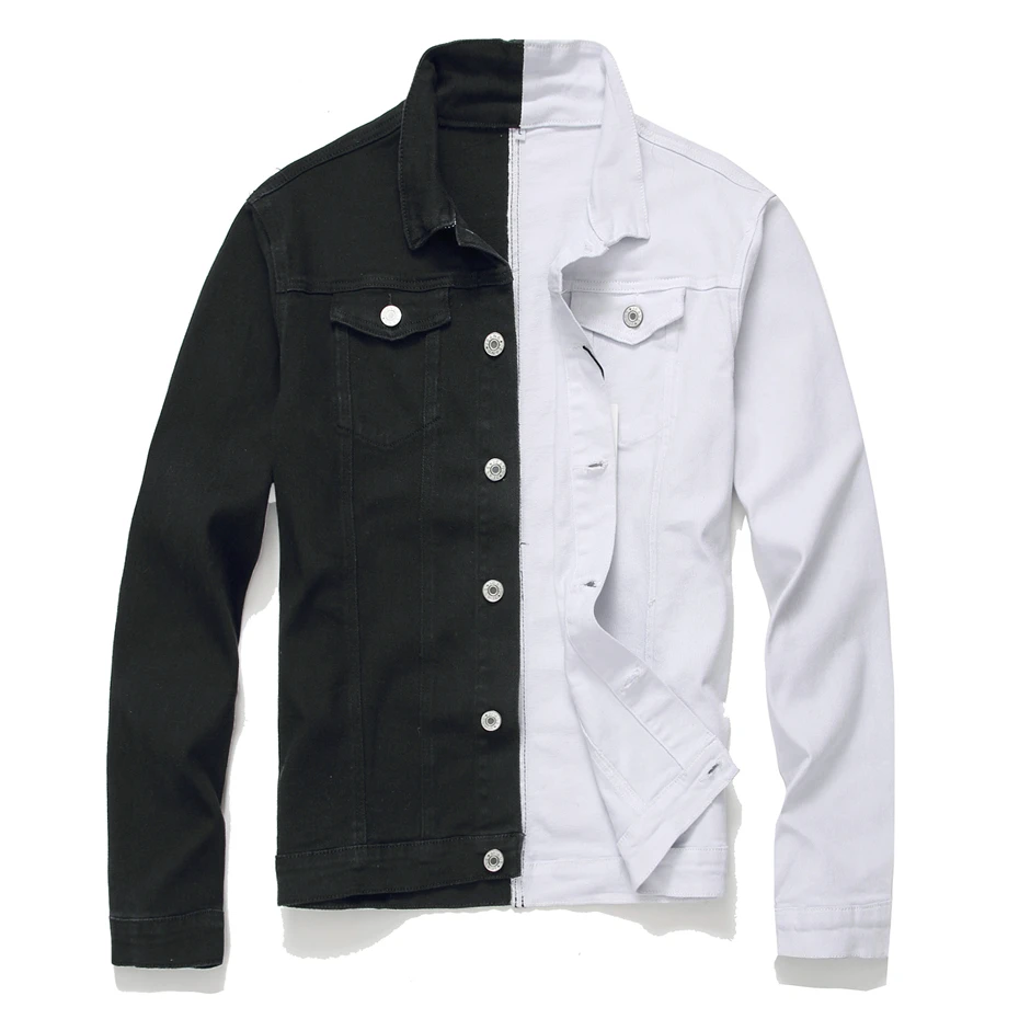 Мужская джинсовая куртка, черная, белая, двухцветная, в стиле пэчво...