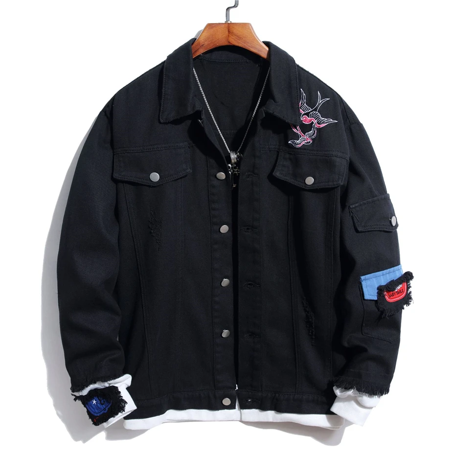 Джинсовая куртка мужская с вышивкой, модная винтажная куртка в стил...