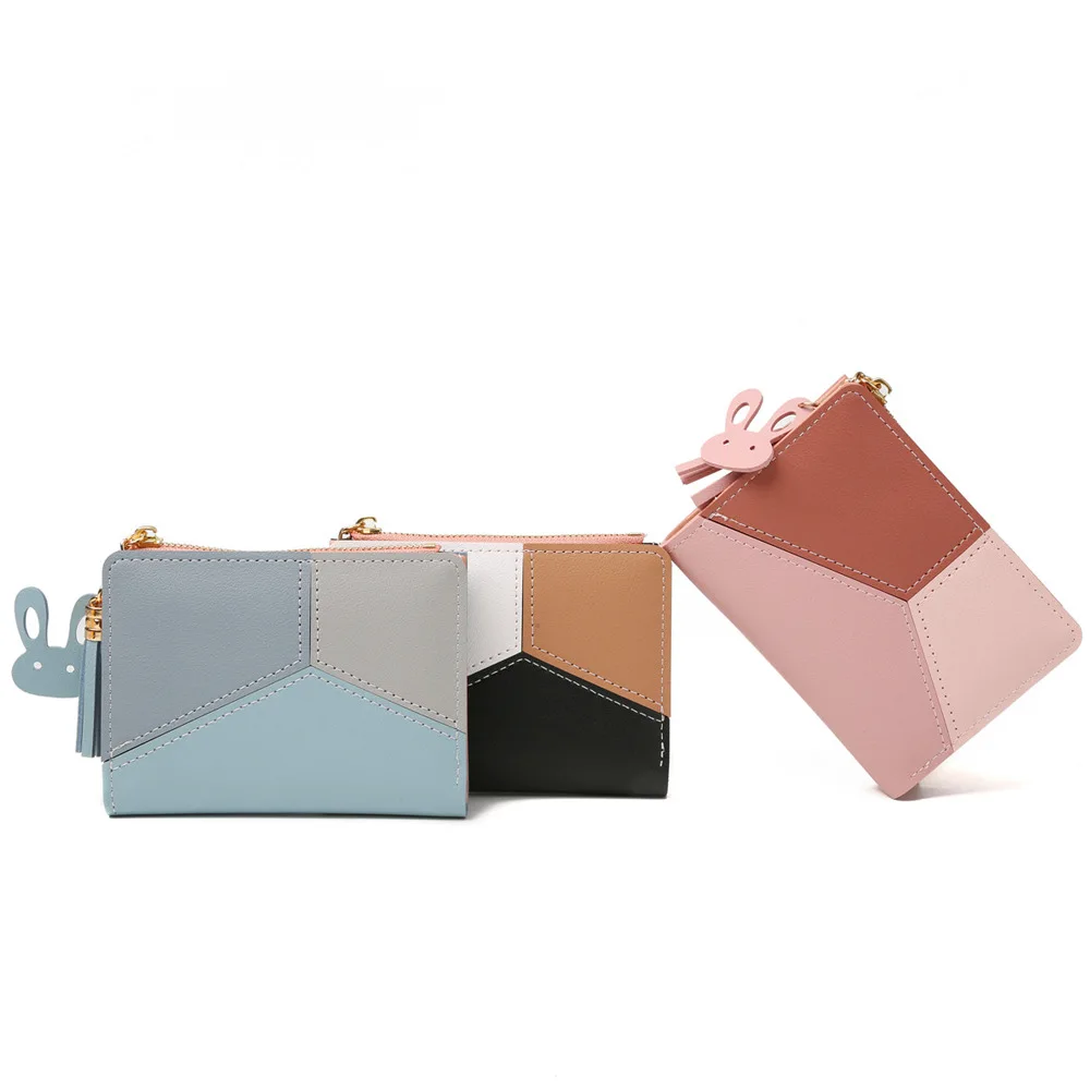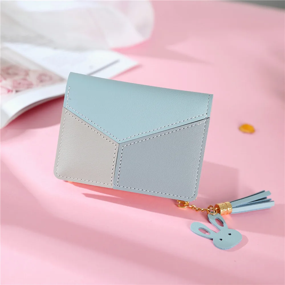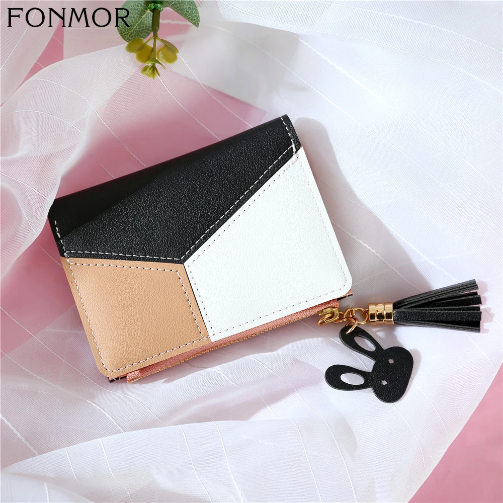 Женский кошелек с кисточкой, маленький симпатичный короткий кошелек, лоскутные кошельки для кредитных и банковских карт, женские кошельки на молнии, кошелек для монет