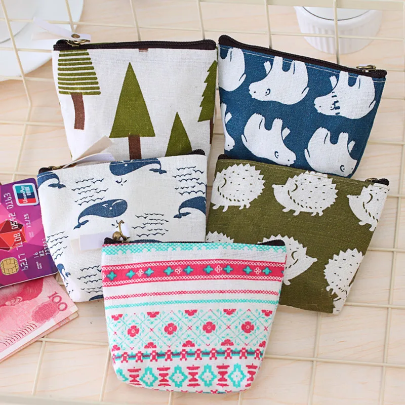 Творческий в этническом стиле портмоне Женская полотняная малым карманн застежки милая детская монета кошелек хранилище сумка КИТ Ежик полярный медведь печати кошелек