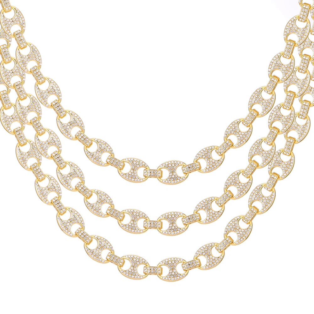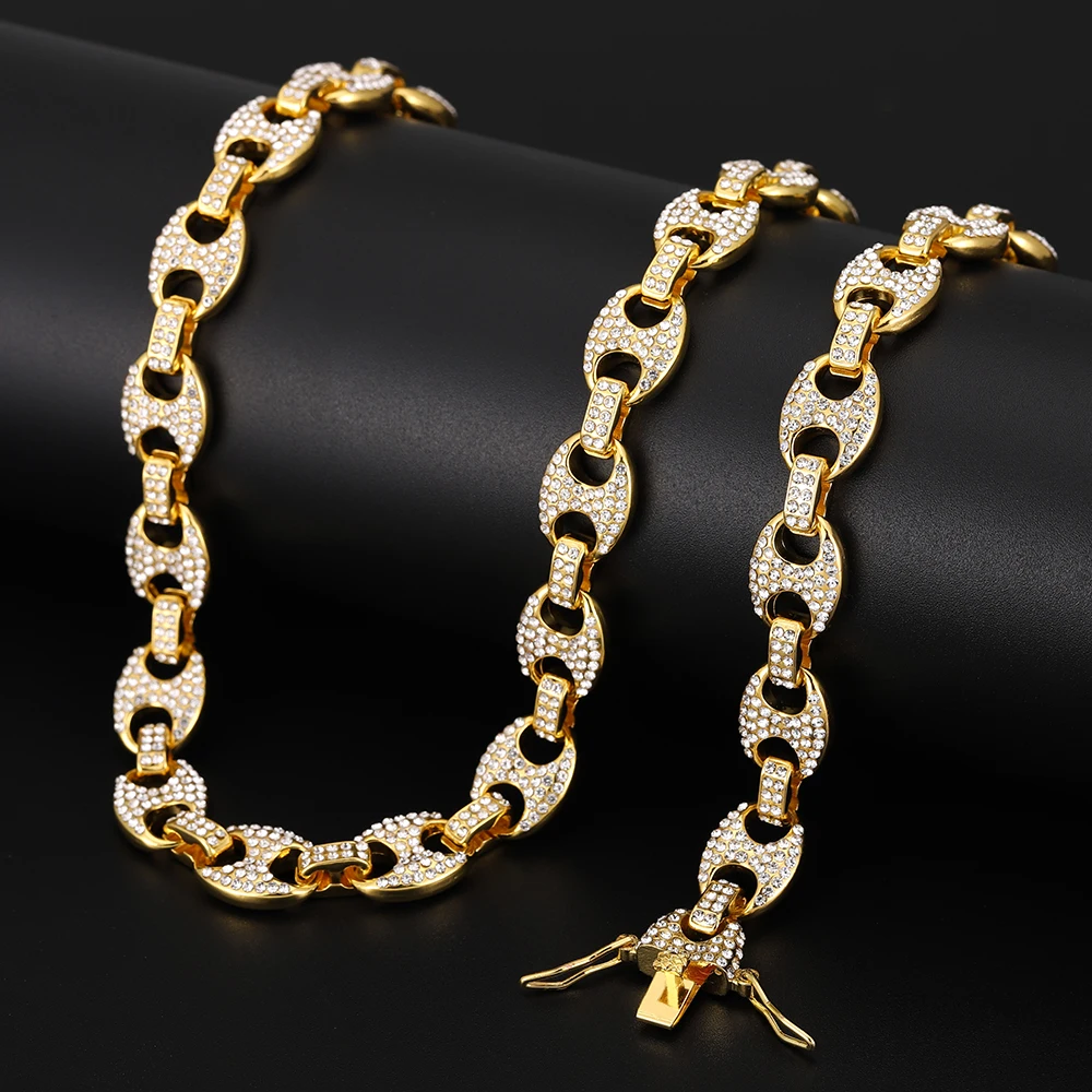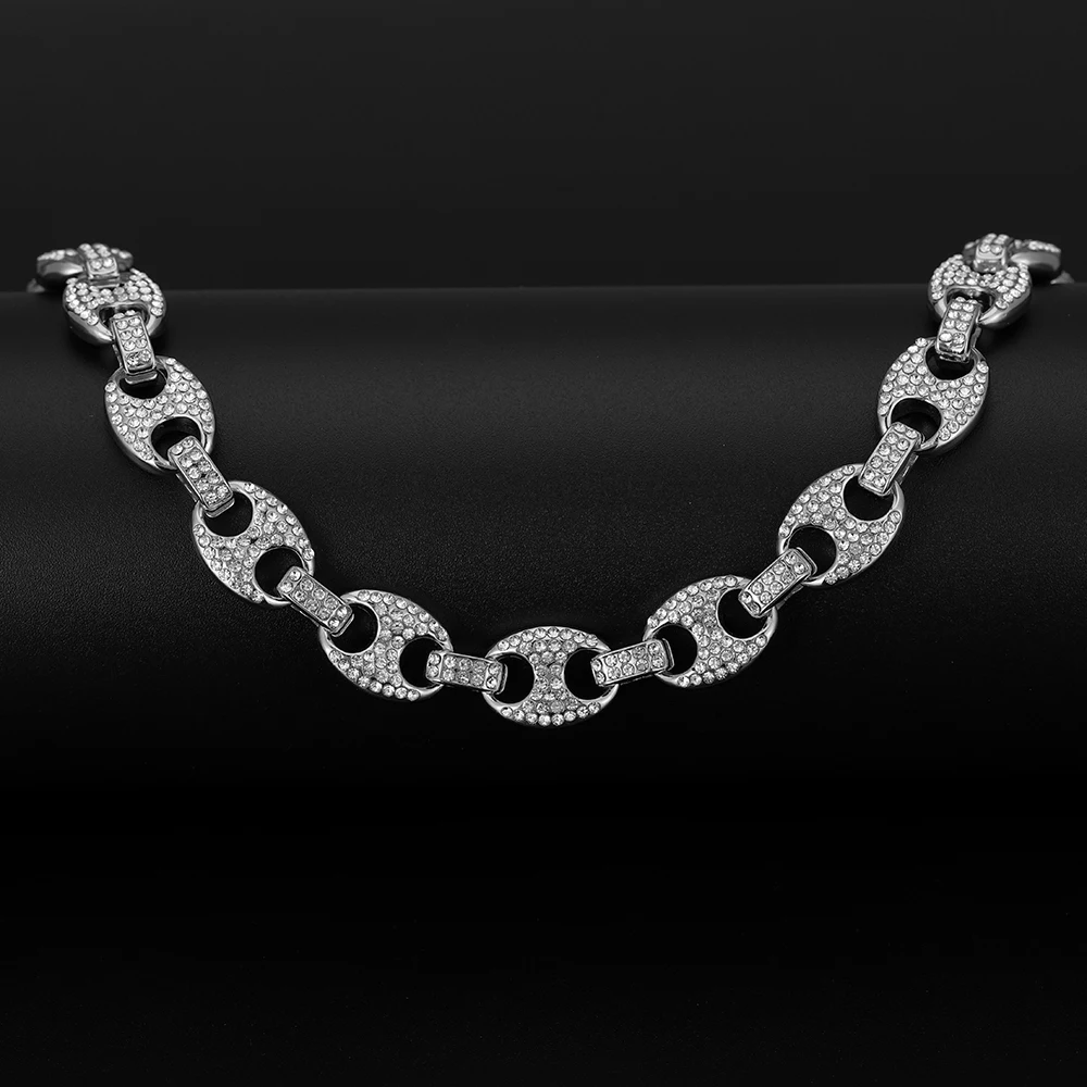 Цепь + браслет комплект в стиле хип-хоп со вкусом кофе сплав фасоли Pig Nose Стразы ожерелье Мужская цепочка на шею для женщин