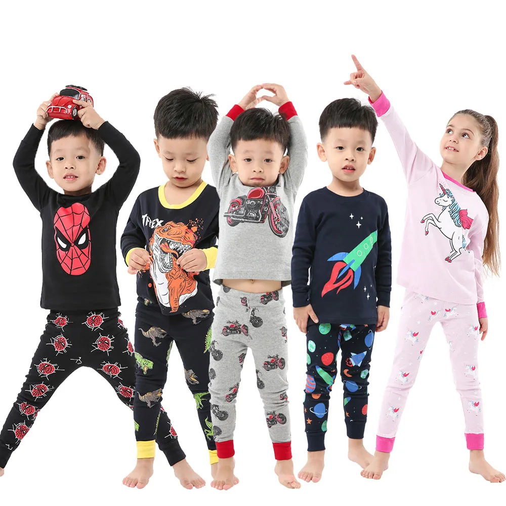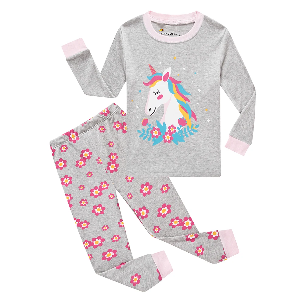 Пижамы из комплект пижамы с героями мультфильмов хлопка с длинным рукавом для девочек, костюмы для маленьких девочек От 2 до 8 лет, детская одежда для девочек