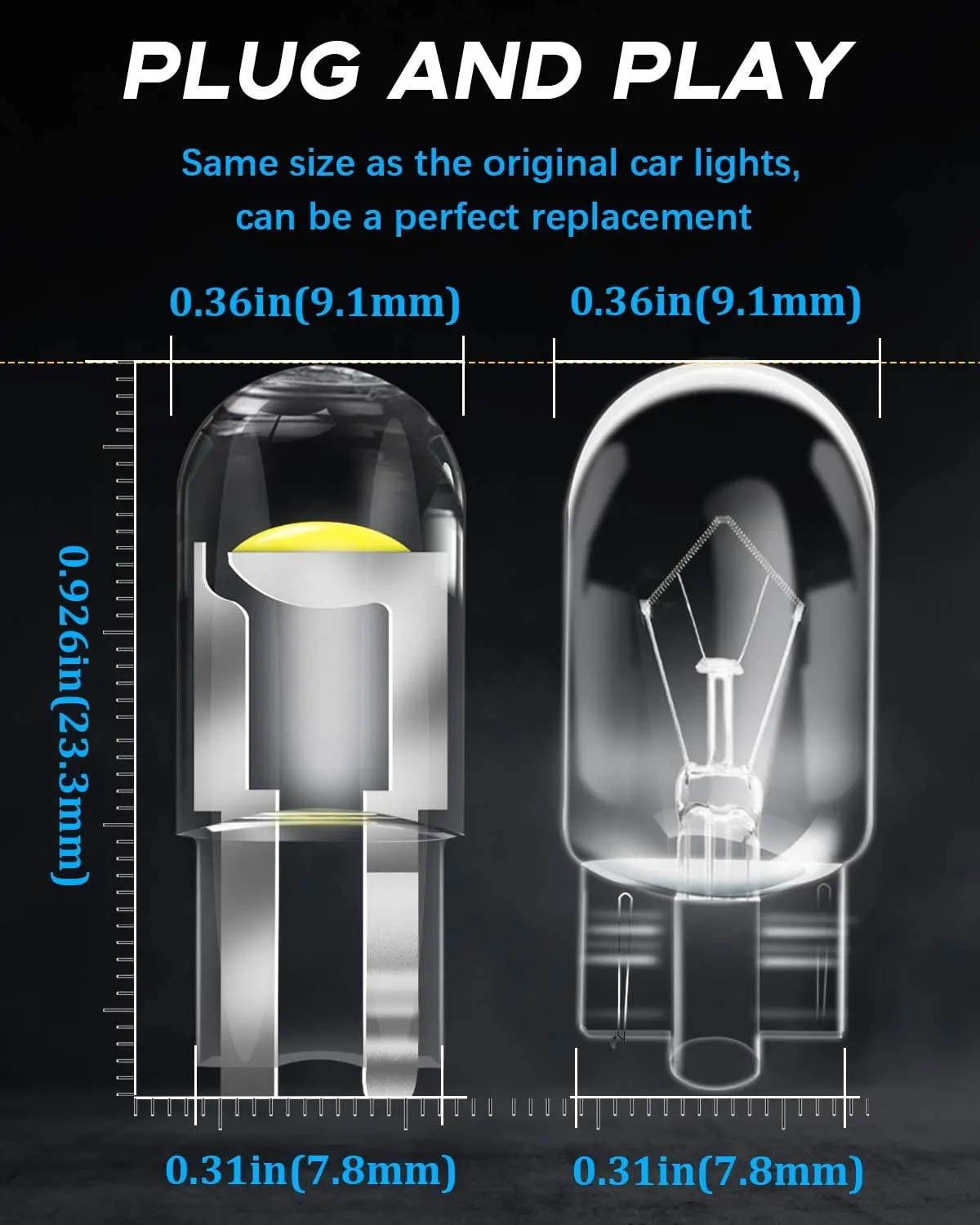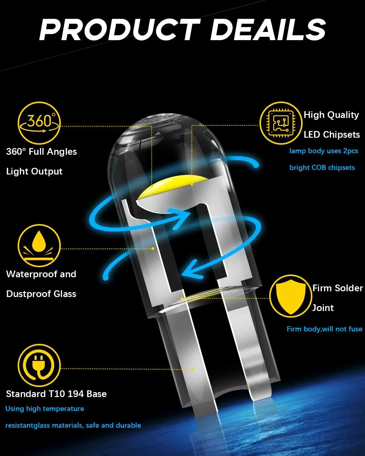 Автомобиль T10 LED W5W COB 194 168 Купольная лампа для чтения Холодный белый Авто COB Кремнезем Красный Синий Зеленый Желтый Лампы номерного знака Лампа боковой двери Лампа для приборов DC12V 6000K Super Bright