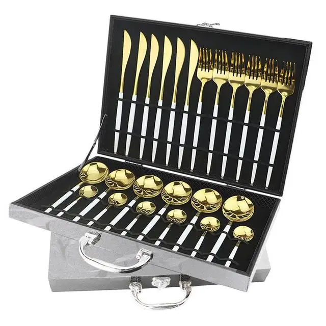 Набор столовых приборов коробка для посуды в 1624 шт., антиоксидантная деревянная Подарочная коробка, коллекционный чехол для хранения столовых приборов, золото, черный, серебро