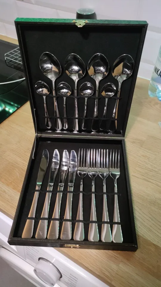 Столовый ножи стандартного размера не поместились в коробку! Есть повреждения сомой коробки