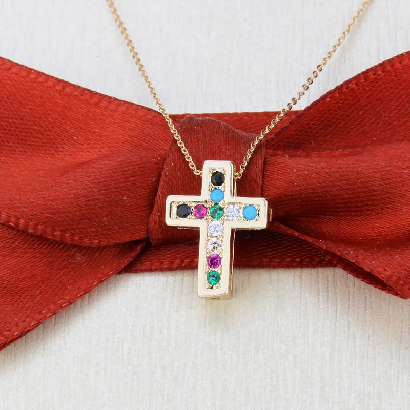 Ожерелье с подвеской-крестом для женщин, цепочка с кулоном из разноцветного медного циркония, инициальное ожерелье, религиозная молитва, Подарочная бижутерия