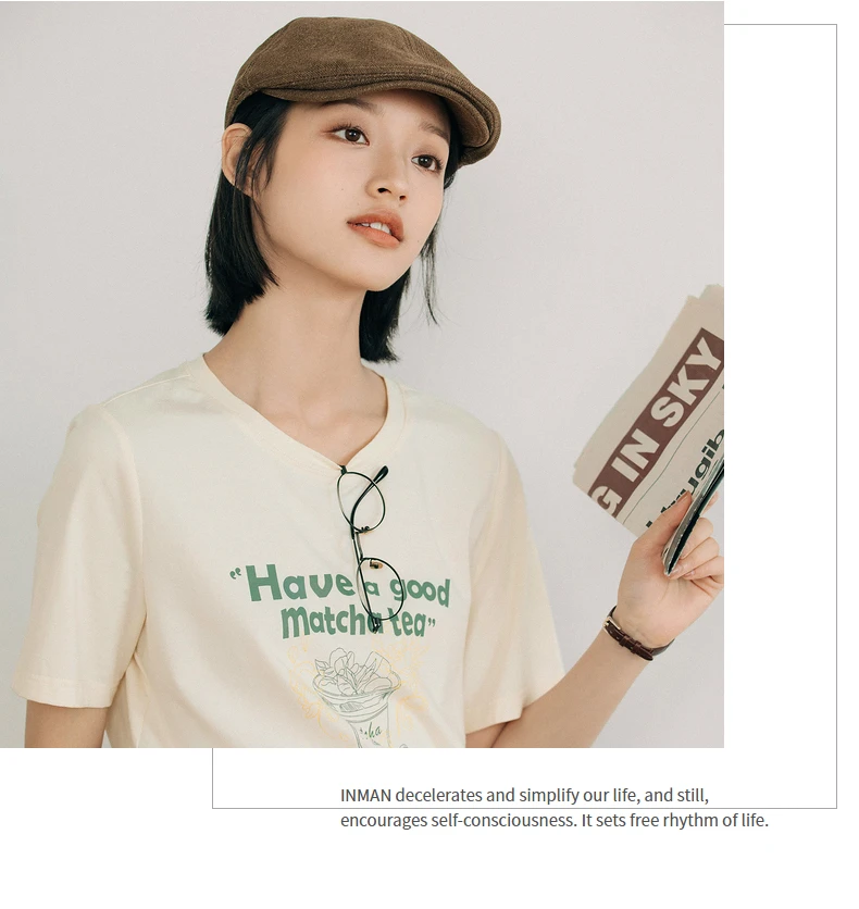 Топ женский с буквенным принтом INMAN, свободная винтажная рубашка в стиле ретро, корейская мода, с коротким рукавом, летний