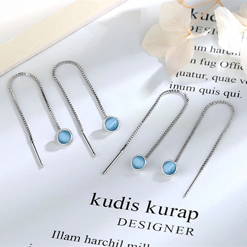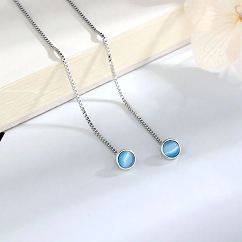 Женские длинные серьги с голубым опалом, посеребренные серьги S925,...
