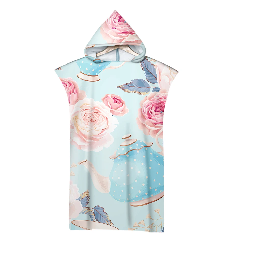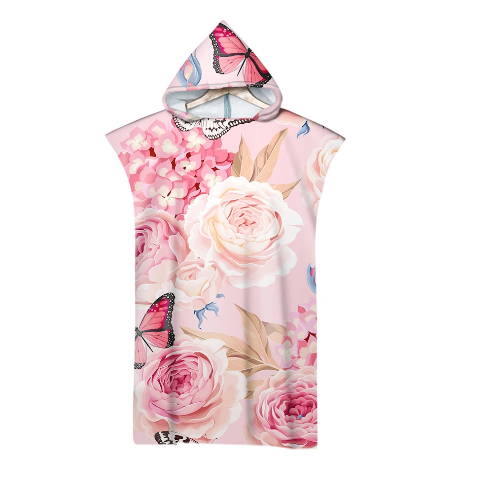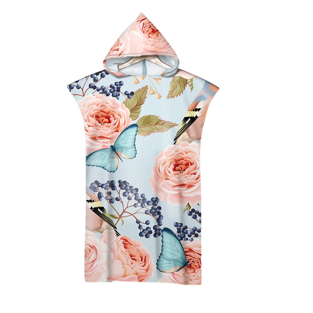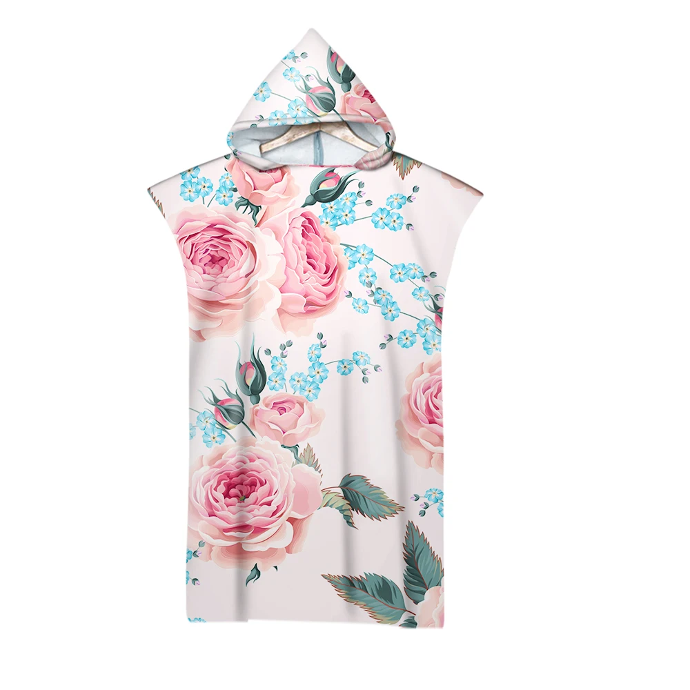 Новое модное Пляжное Пончо из микрофибры с цветочным принтом для взрослых, полотенце для плавания, серфинга, быстросохнущее банное полотенце с капюшоном, банный Халат