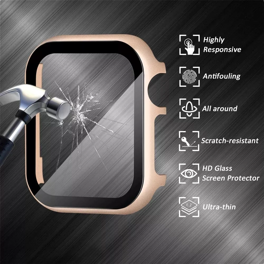 Стекло + matel чехол для Apple Watch чехол 44 мм 40 мм iwatch 4238 ...