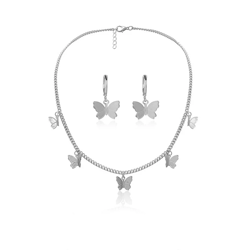 Ожерелье с бабочкой, серьги, регулируемые, ожерелье цепочка с бабочкой