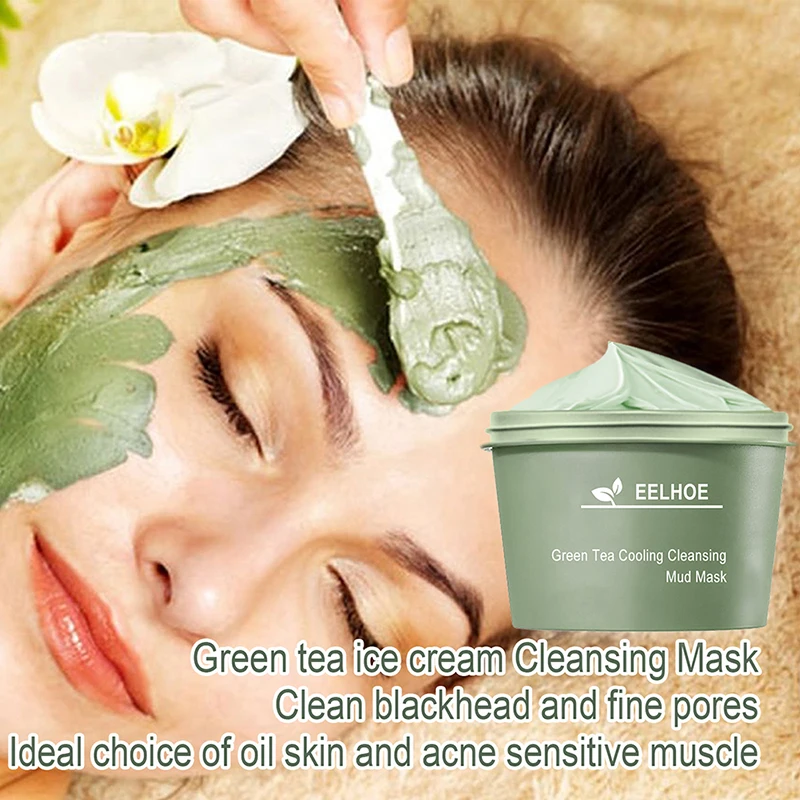 Маска для лица 100 г зеленый чай ледяная мышечная грязевая маска глубокая чистка Удаление черных точек и термоусадочная маска суживающая поры средства для ухода за кожей лица