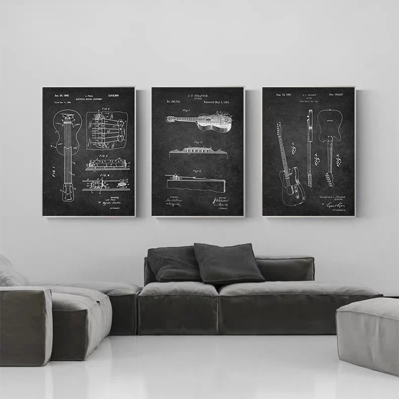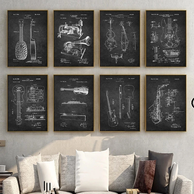 Настенная картина с изображением музыки, гитары, скрипки, винтажные плакаты, N принты, черно-белая промышленная стильная Картина на холсте, подарок, домашний декор