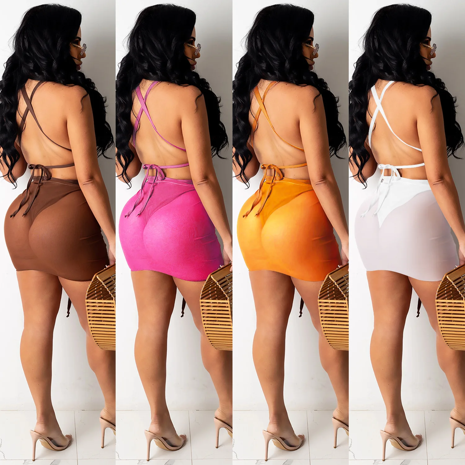 Сексуальный комплект бикини Zoctuo, комплект из трех предметов, кружевная сетчатая прозрачная пляжная одежда с вырезами, мини-юбка, сексуальный комплект бикини с открытой спиной