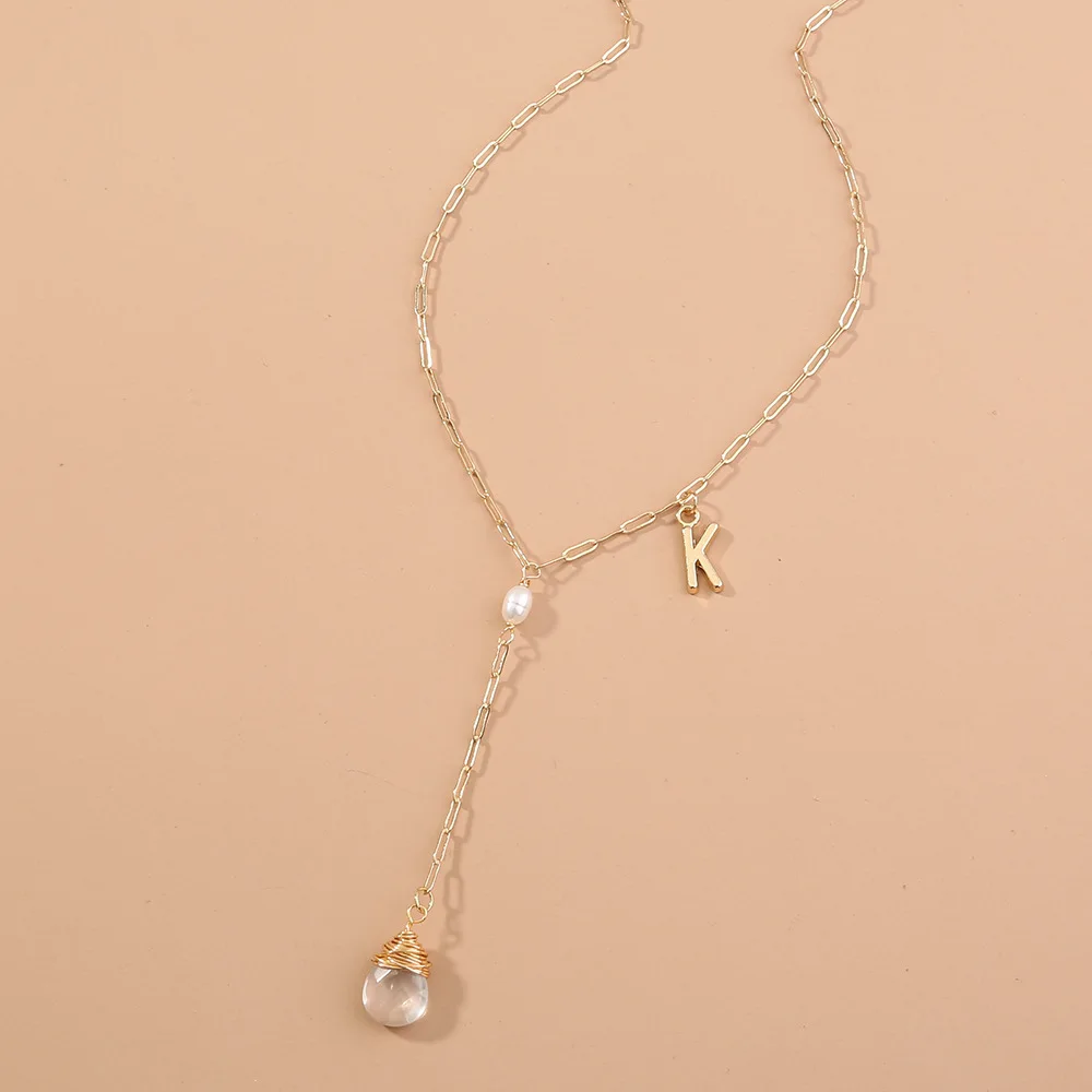 Цепочка в клетку с надписью, простое ожерелье с дизайном в виде капли воды из натурального камня, темпераментная цепочка до ключиц