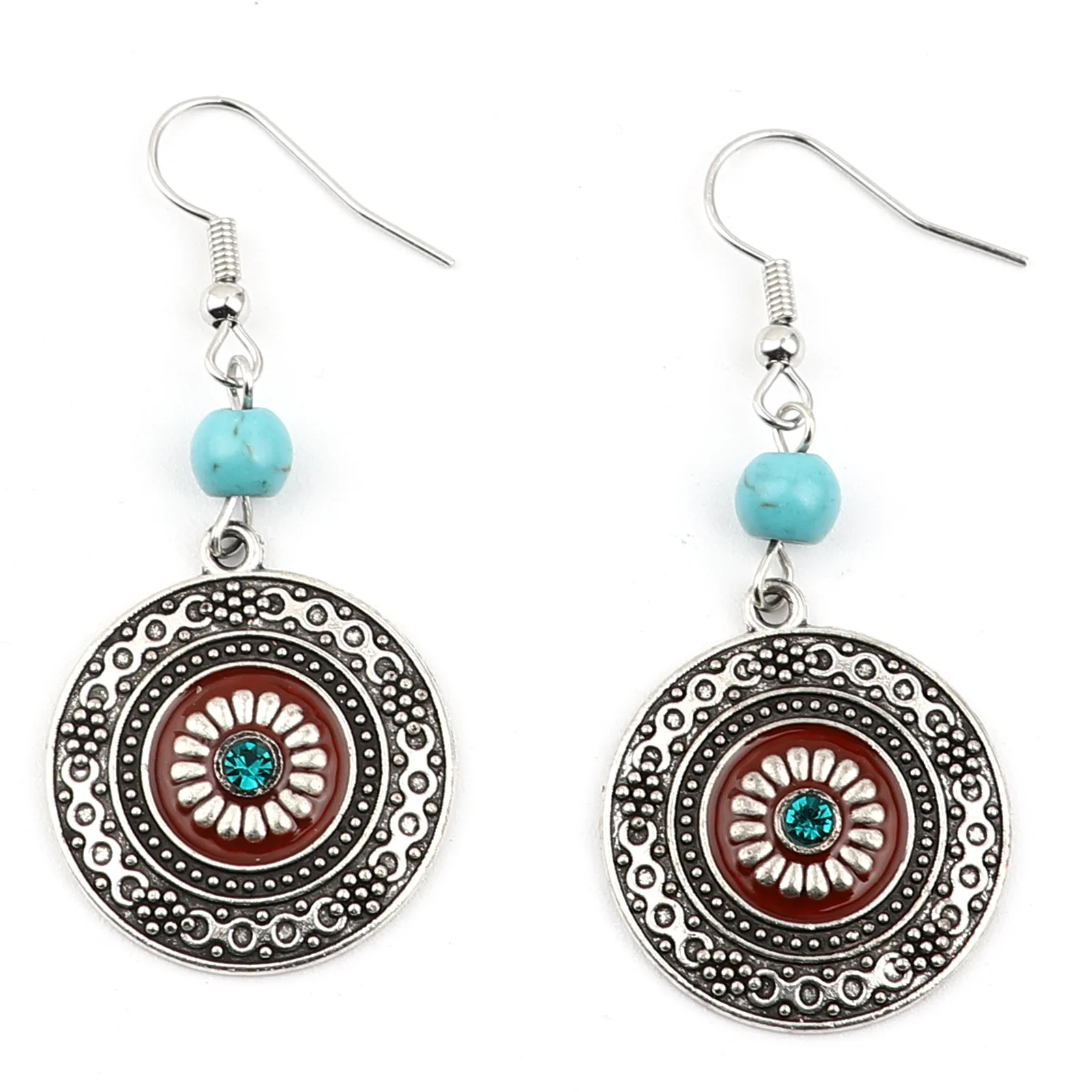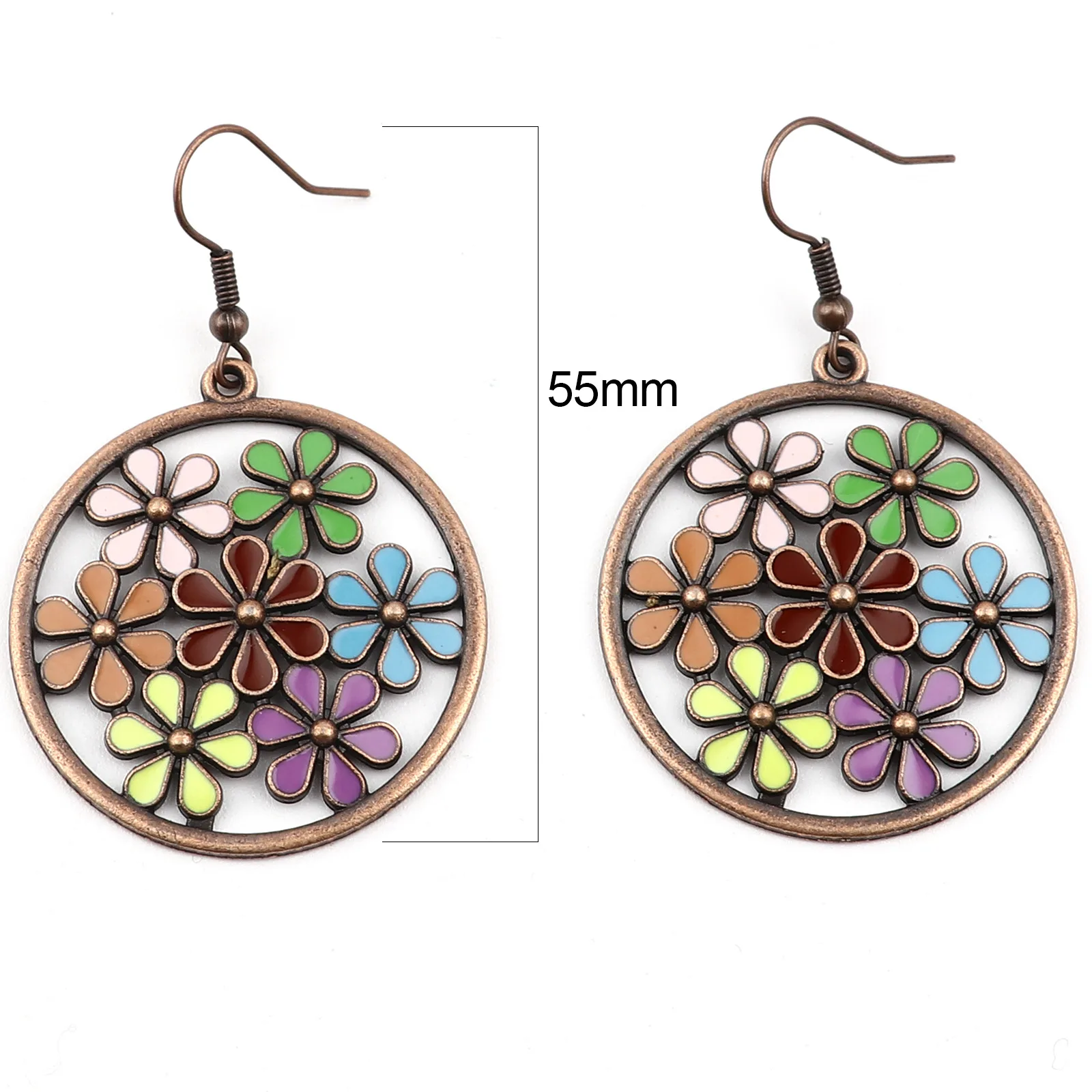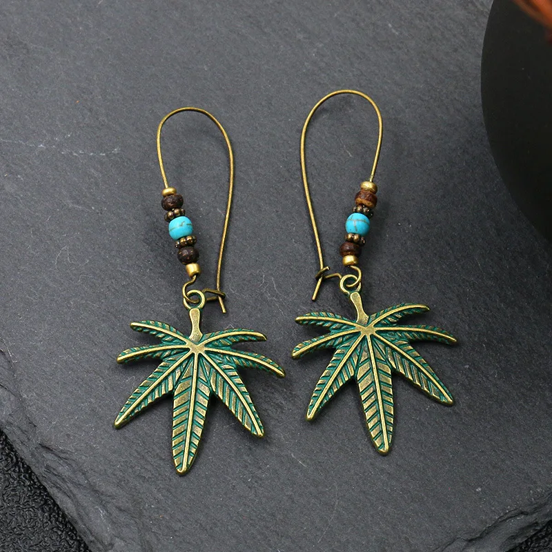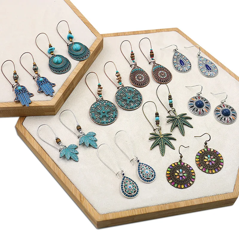 1 пара носков в стиле ретро в богемном стиле, украшенная цветами и бусинами листья, свисающие серьги для женщин, серьги старинные ювелирные изделия с геометрическим узором, Круглый, высокое качество, ювелирное изделие, подарок