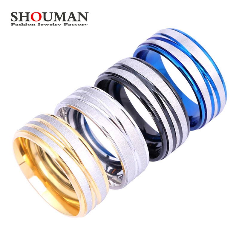 SHOUMAN 8 мм саржевое мужское кольцо из нержавеющей стали золотисто...