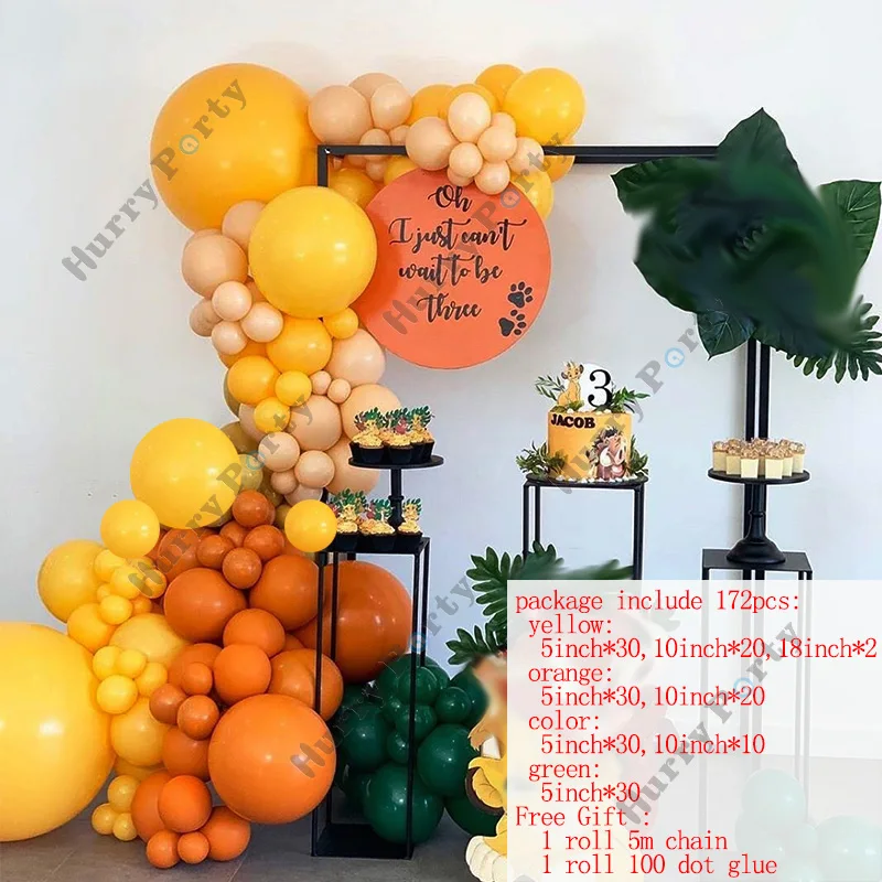 172 шт. желтые шары гирлянда арки на день рождения вечерние свадебные украшения с открытыми пальцами; Цвета оранжевый, зеленый, шар арочный Комплект Baby Shower для мальчиков домашний декор