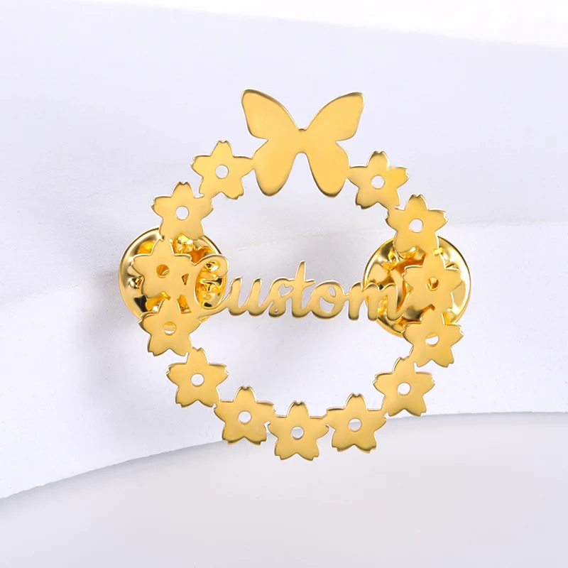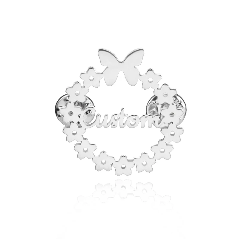 Персонализированные булавки с бабочкой для таблички, круглые цветочные броши с именем на заказ для женщин, свадебные подарки подружки невесты, оптовая продажа
