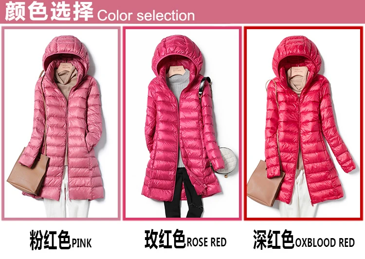 Женский пуховик с капюшоном, ульсветильник теплый длинный пуховик на белом утином пуху, Осень-зима 90%