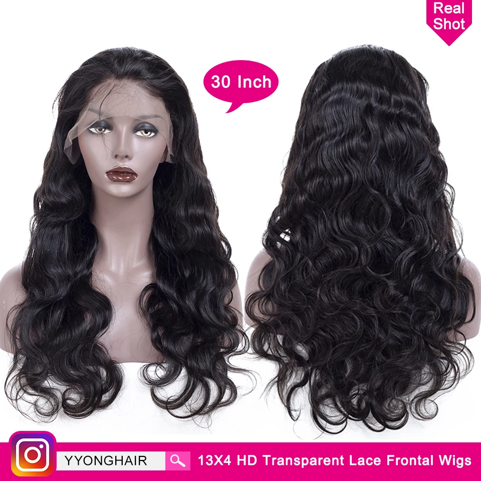 Парики из натуральных волос YYong 26, 28, 30 дюймов, 13x4 дюймов, прозрачные, объемные волнистые, 180%, для чернокожих женщин