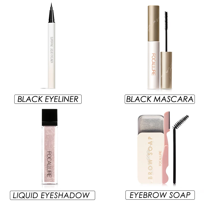 FOCALLURE 4 шт. Гель для макияжа Бровей Жидкие тени для век Черная Подводка для глаз Тушь для ресниц водоСТОЙКАЯ Профессиональная Косметика для женщин