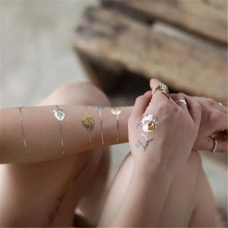 Бронзовые серебряные татуировки наклейки сексуальные летние водонепроницаемые временные женские Цветочные татуировки из хны модный дизайн