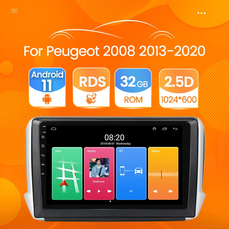 Автомагнитола на Android 11, мультимедийный видеоплеер с навигацией для Peugeot 2008, 208, 2012, 2013, 2014 -2018, GPS навигация, Авторадио с Wi-Fi
