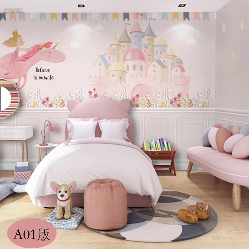 Фотообои 3D мечта принцесса комната мультфильм розовый замок детская комната девушка спальня фон Настенные обои на заказ