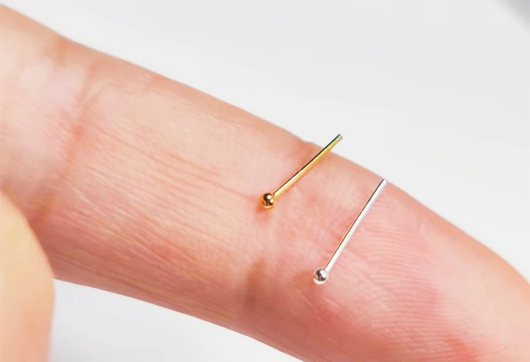 Эти изящные крошечные шпильки из стерлингового серебра идеально подходят для пирсинга. Без никеля и свинца. Очень безопасный для пирсинга.Размеры: Толщина: 24 г (0,5 мм) Длина: 10 ммЦвет: серебристый, золотойУпаковка: 100 шт./лотКаждый из них сделан из стерлингового серебра материал 0,5 мм толщина высокого качества Ювелирные наборы для ухода за кожей в провода. Этот провод очень мягкий, легко сгибается в форме L, подходит для вашего носа