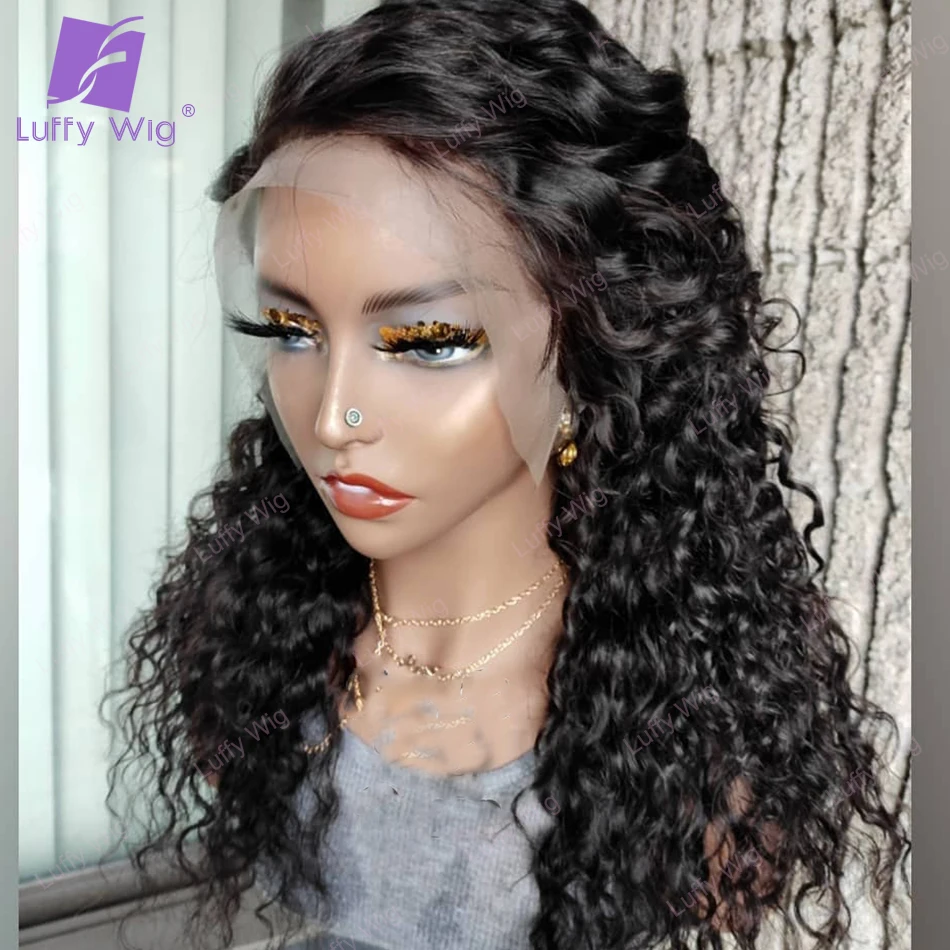 13x 6 парик на сетке спереди, вьющиеся бразильские волосы Remy, парики на сетке спереди, без клея, плотность 250, предварительно выщипанные для черных женщин LUFFY