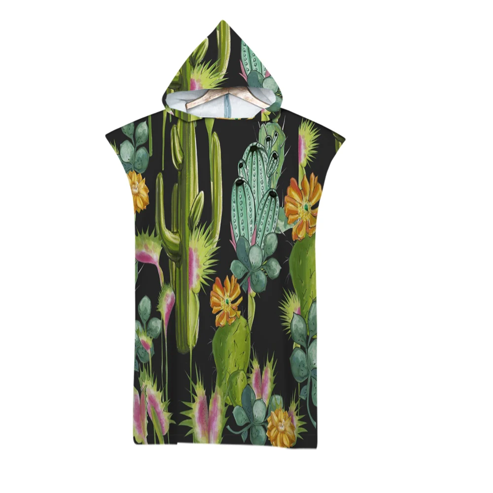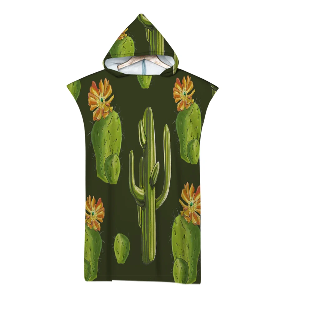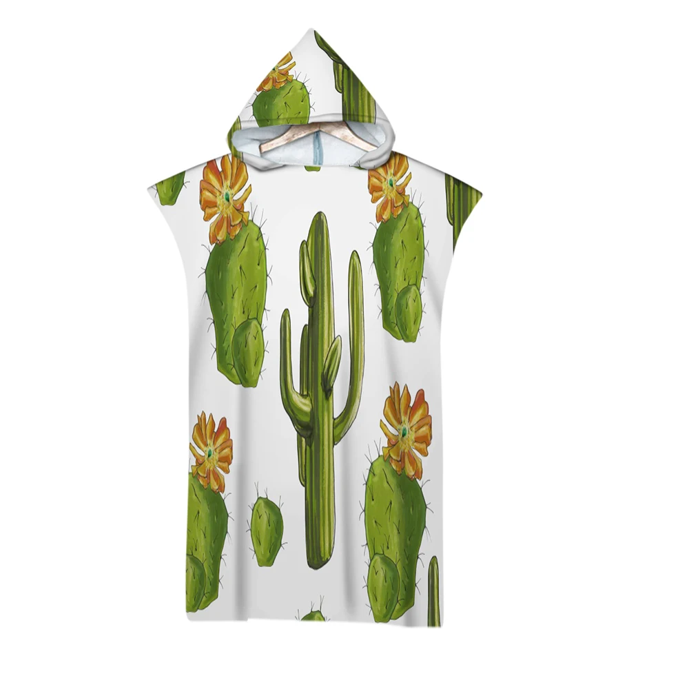 Банное полотенце из микрофибры с капюшоном и принтом кактуса, летнее пляжное полотенце для смены мантии, пончо для серфинга, пляжная одежда для плавания, летучая мышь