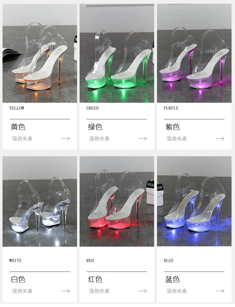 Модель светящиеся туфли с кристаллами для женщин 15 см сексуальные туфли для ночного клуба на очень высоком каблуке сандалии на платформе прозрачные туфли для танцев на стойке Новинка 2021