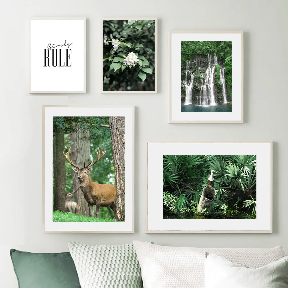 Зеленое озеро горы лес банановые листья настенная живопись холст ск...