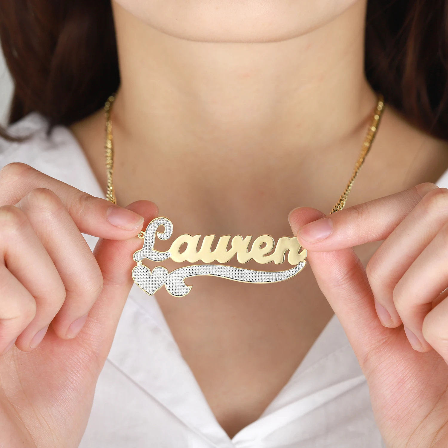Индивидуальное ожерелье с именем в форме сердца, позолоченная двухц...