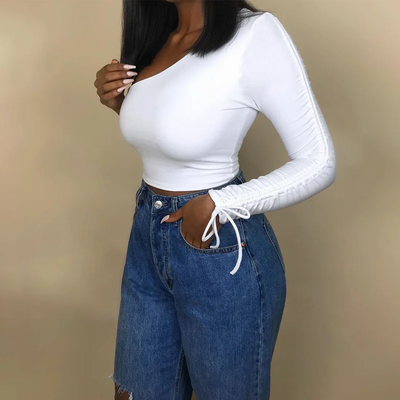 Женская летняя и осенняя Сексуальная облегающая футболка с длинным ...